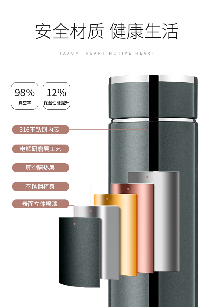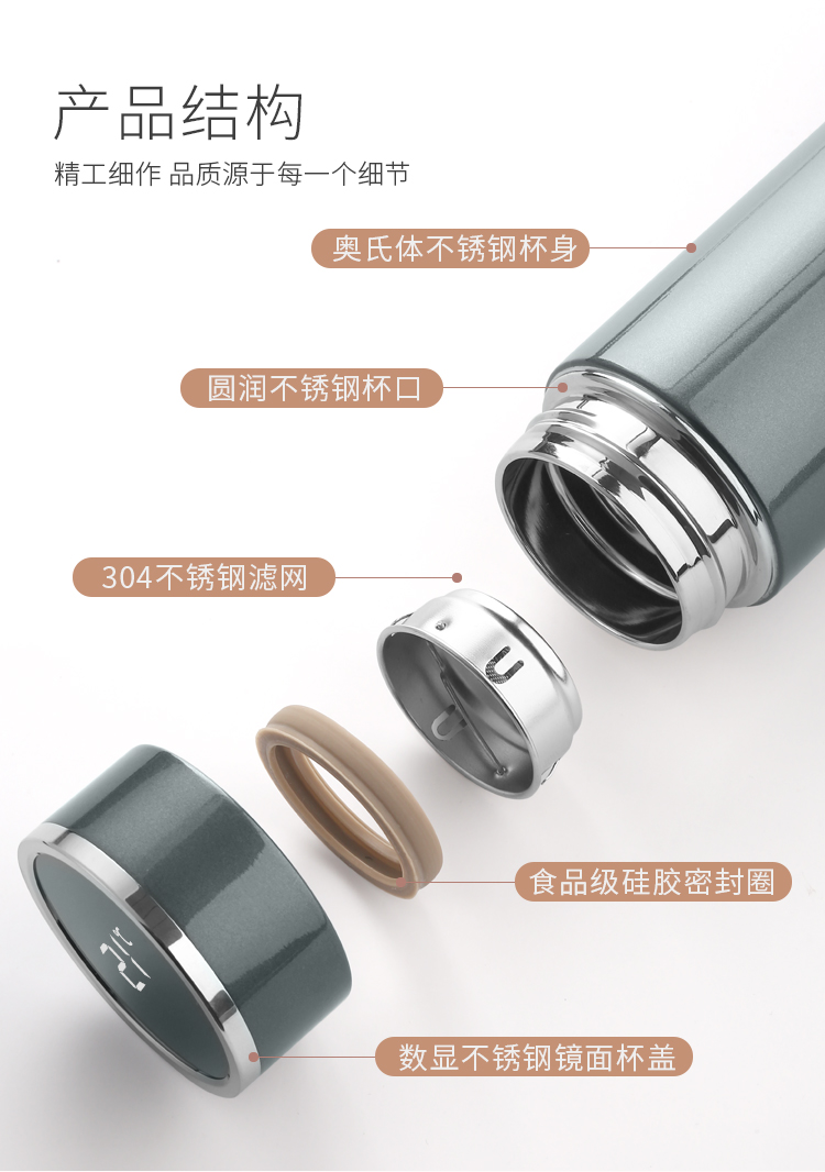 匡迪智能保溫杯316不銹鋼男女學生便攜水杯子高檔測溫泡茶杯定制刻字 宇宙藍 400ml 自營
