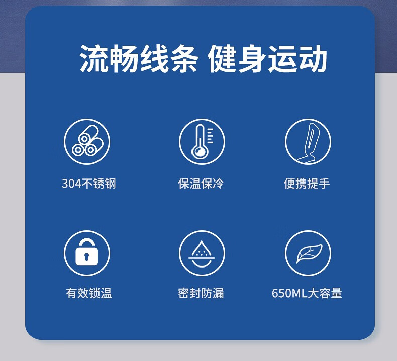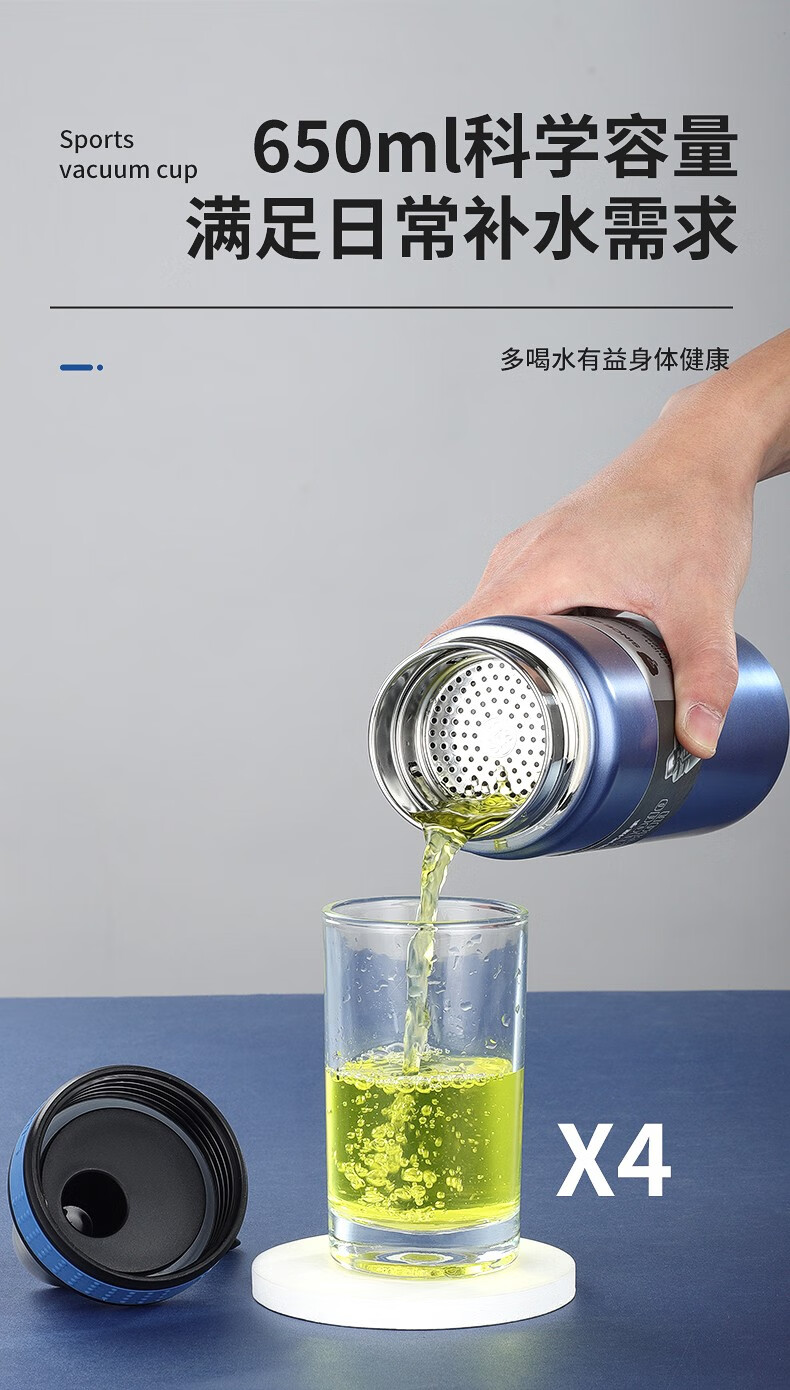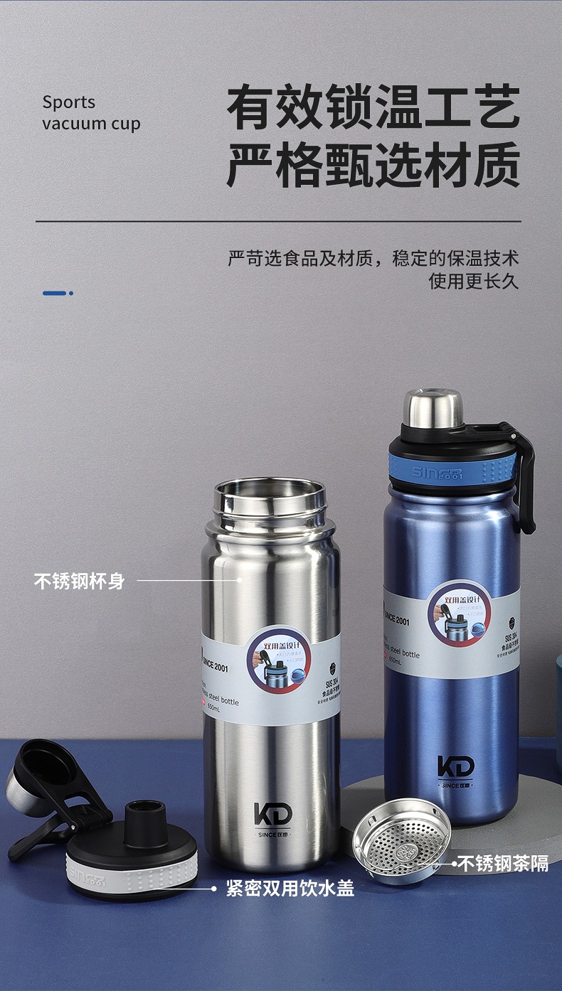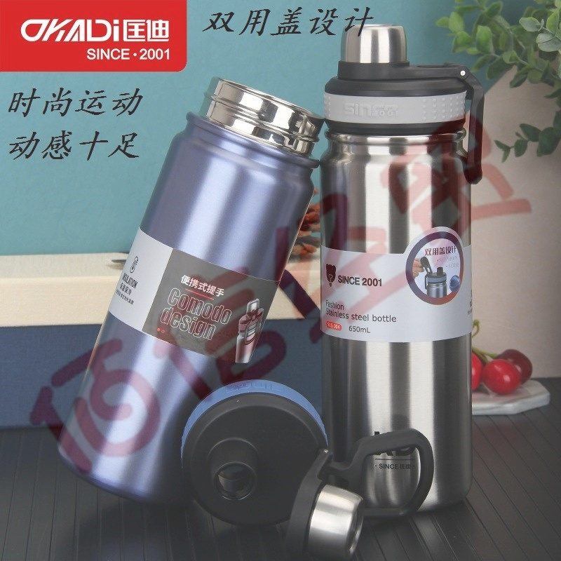 匡迪(DKADI)304不銹鋼保溫杯大容量便攜車載男女學生戶外運動旅行水杯子 鋼本色650ml 自營
