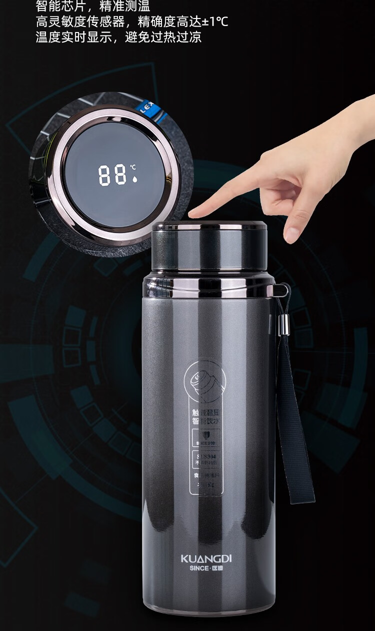 匡迪(DKADI) 真空保溫杯智能溫顯男女士商務(wù)帶過濾網(wǎng)帶提繩大容量車載泡茶杯 尚青色 普通蓋子 720ml 自營