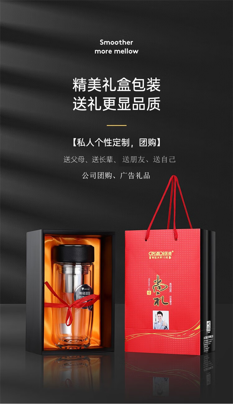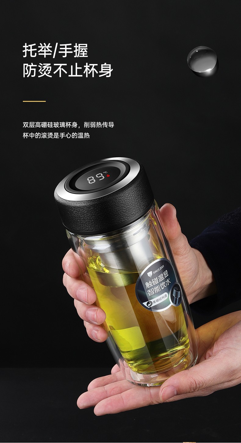 匡迪(DKADI) 匡迪雙層玻璃杯男士智能顯溫高檔泡茶杯子加厚防摔防燙隔熱水杯 咖色 440ml 自營(yíng)