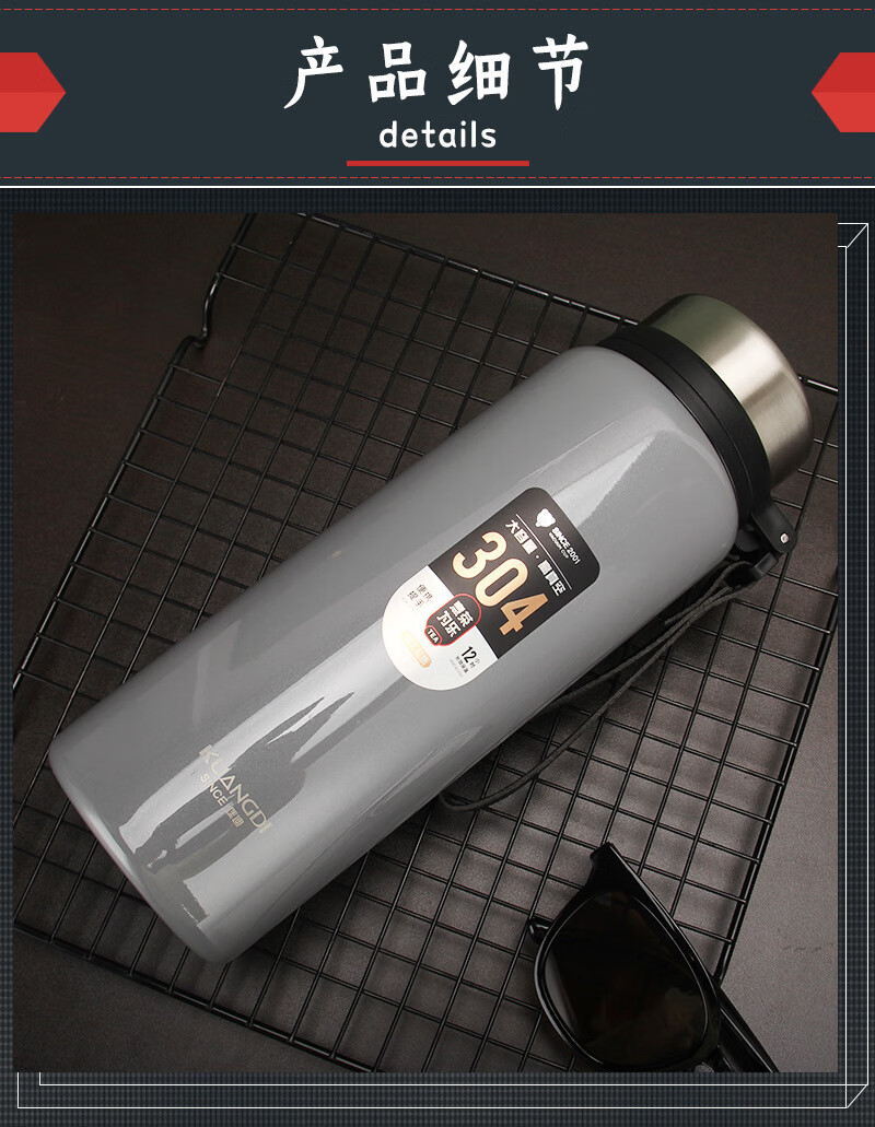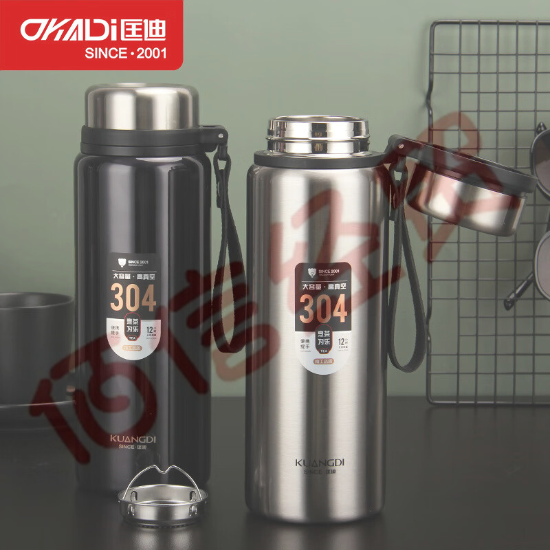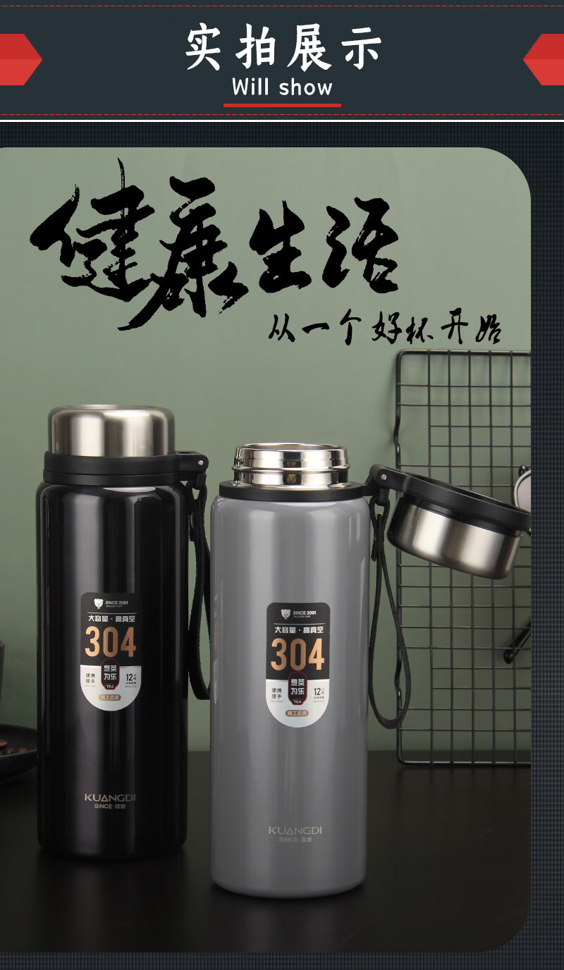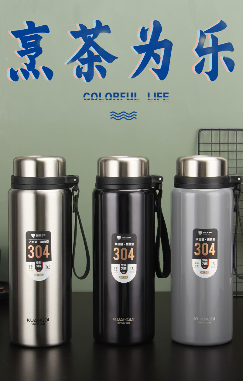 匡迪(DKADI) 新款匡迪大容量真空休閑杯內(nèi)膽304不銹鋼車(chē)載便攜式旅行保溫杯 青色 900ML 自營(yíng)