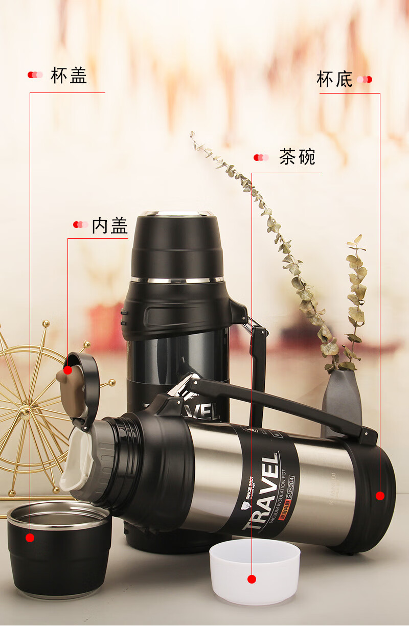 匡迪匡迪保溫壺304不銹鋼真空保溫壺9011戶外旅游壺便攜戶外旅游壺 9011本色2000ml 自營