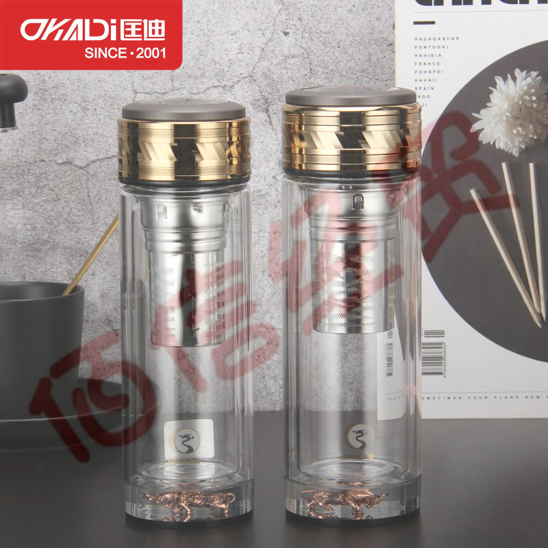 匡迪2107號(hào)雙層高硼硅水晶玻璃杯辦公商務(wù)泡茶禮品水杯可定logo 金色350ML 自營(yíng)