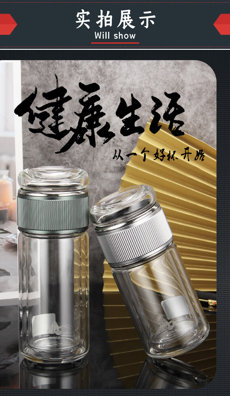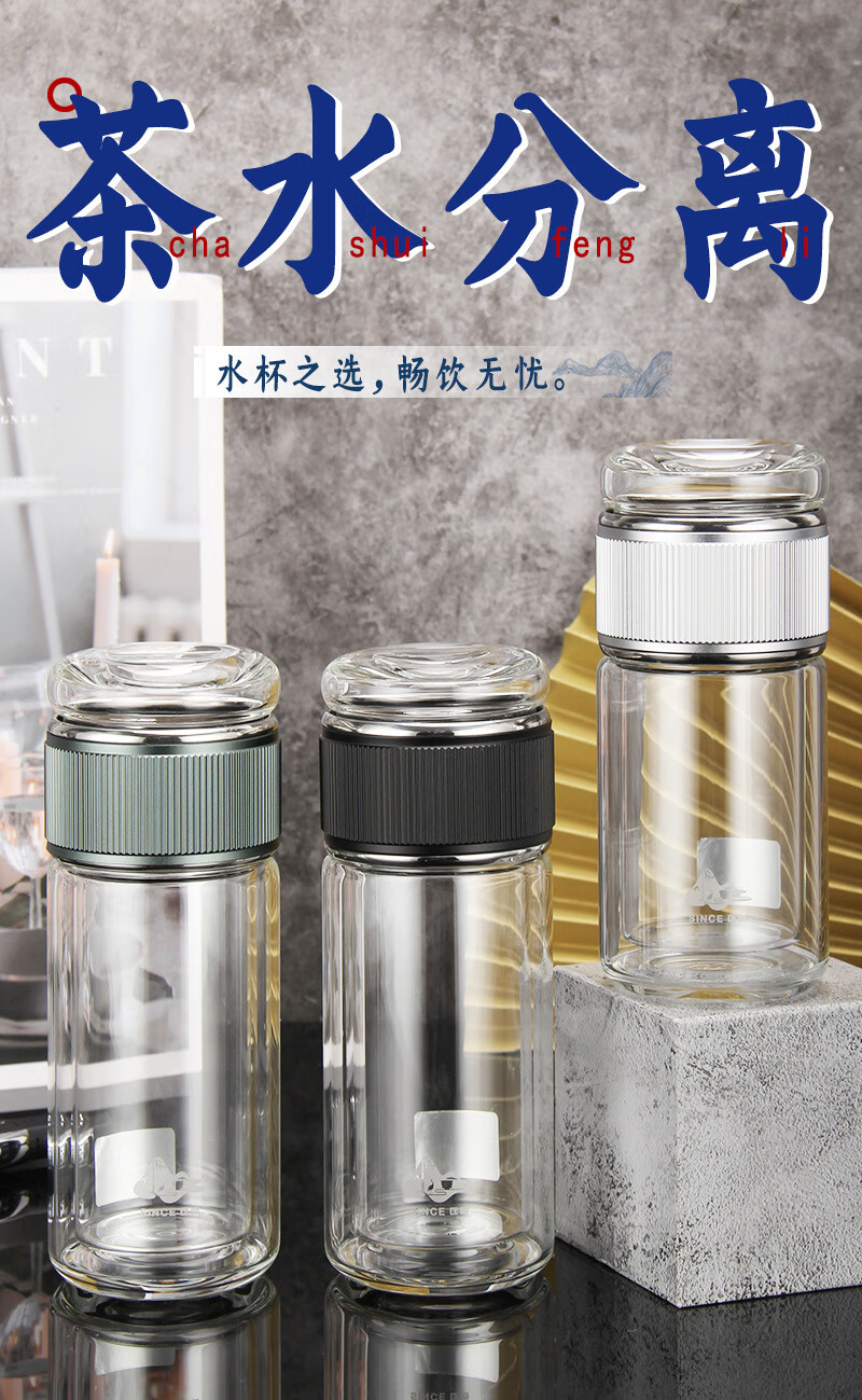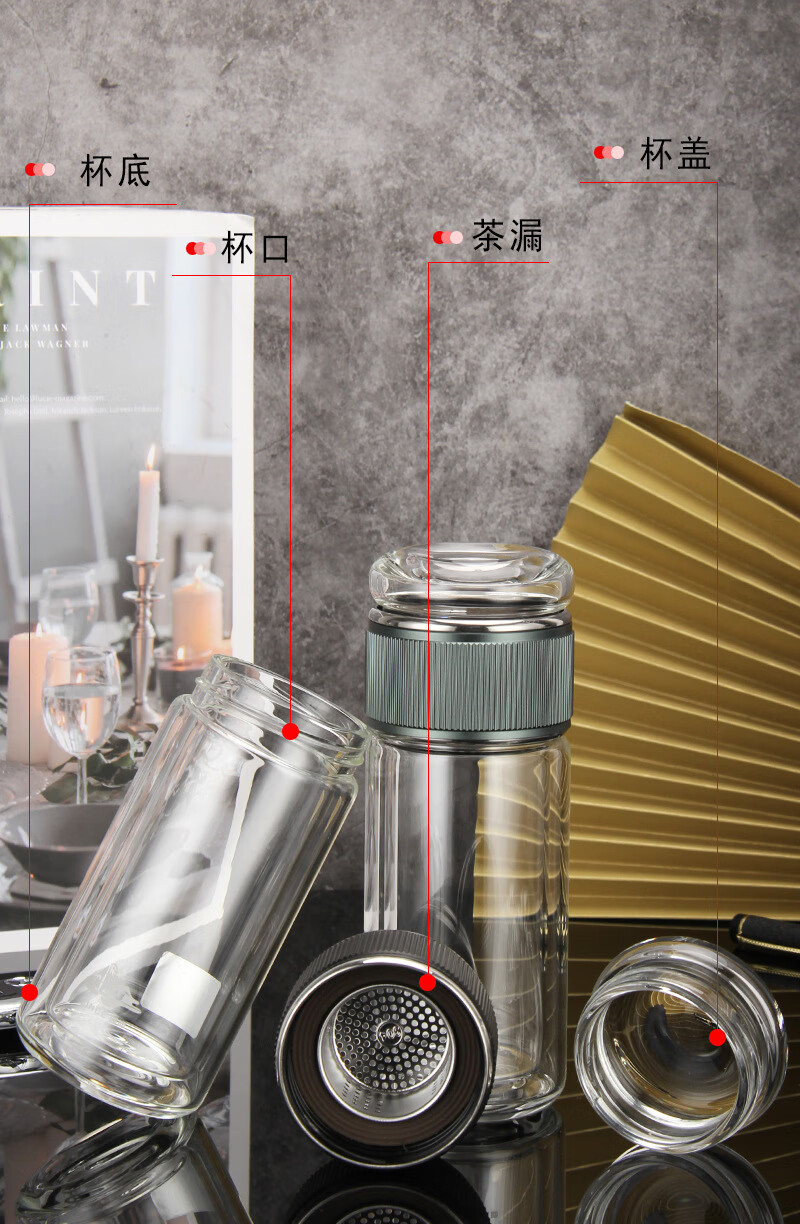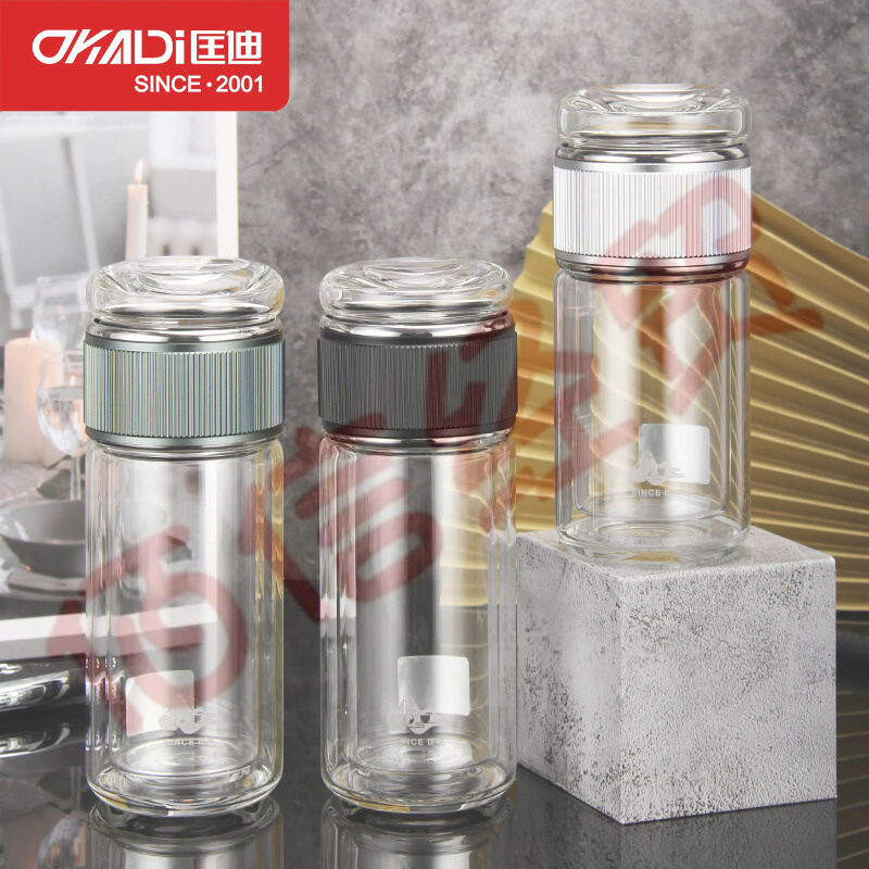 匡迪(DKADI) 匡迪茶水分離杯雙層玻璃水杯子便攜隨手杯過濾泡茶師戶外泡茶杯 2062綠色220ml 自營