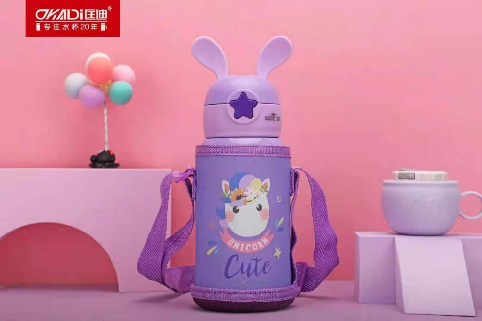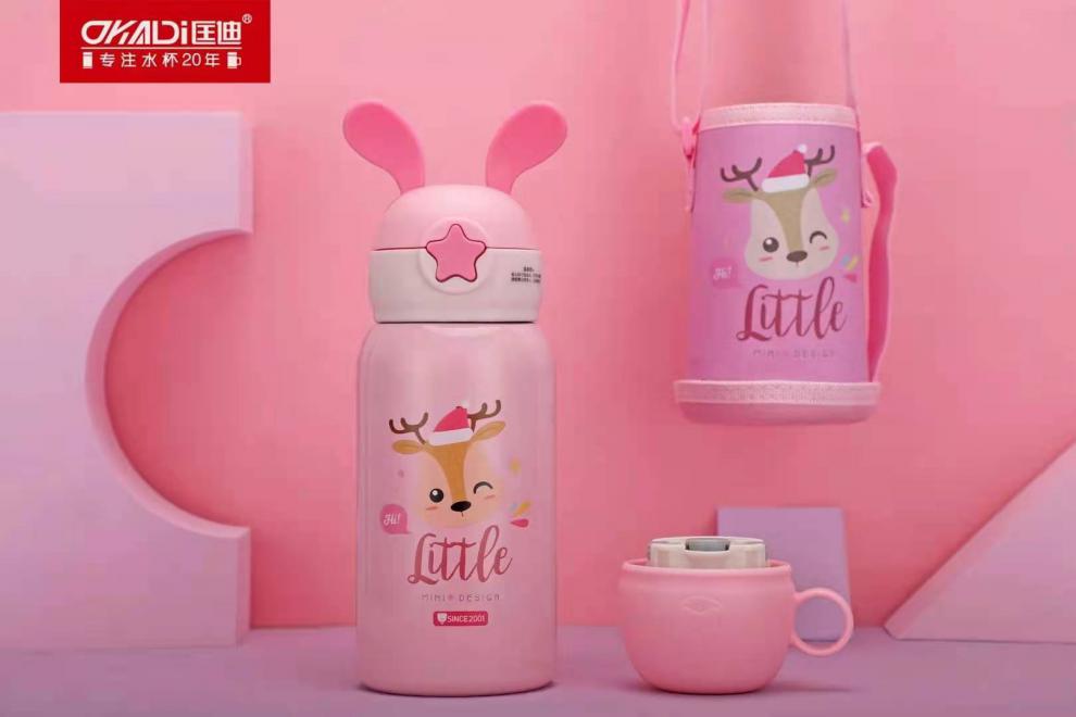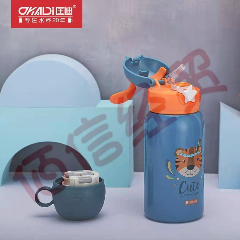 新款匡迪兒童保溫杯真空304不銹鋼內膽兒童吸管杯兩用學生兒童保溫杯 綠色500ml杯套 自營