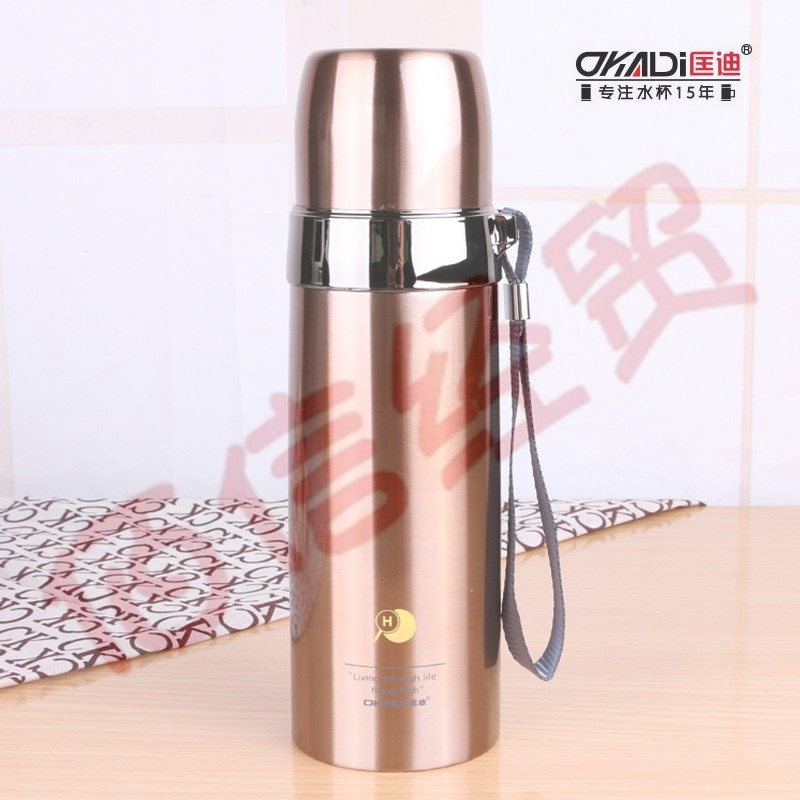 匡迪(DKADI) 匡迪保溫杯水杯不銹鋼真空保溫杯高真空頭內304不銹鋼手提繩保溫杯男女 金色 450ml 自營