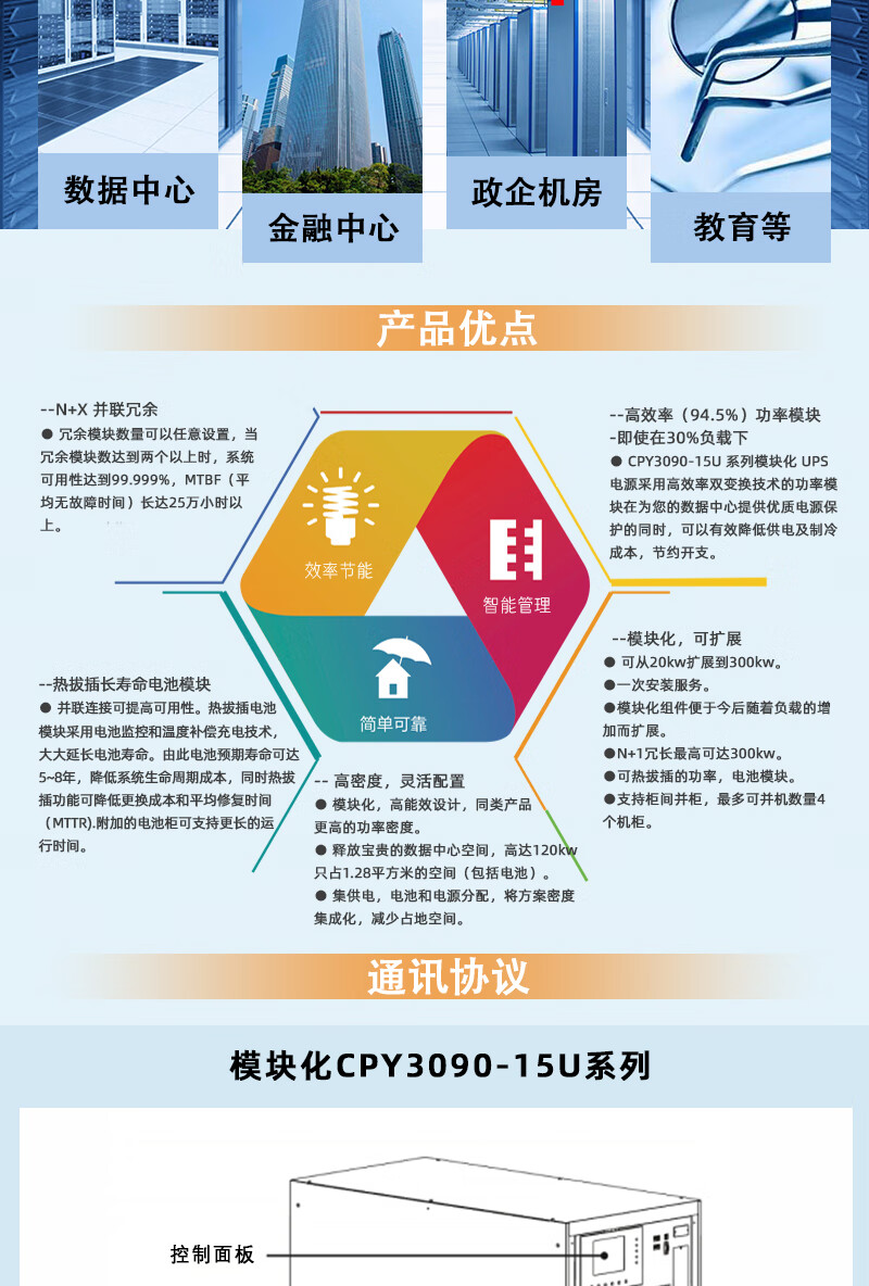 商宇 三進(jìn)三出 模塊化 CPY3090-15U系列 UPS電源 自營(yíng)
