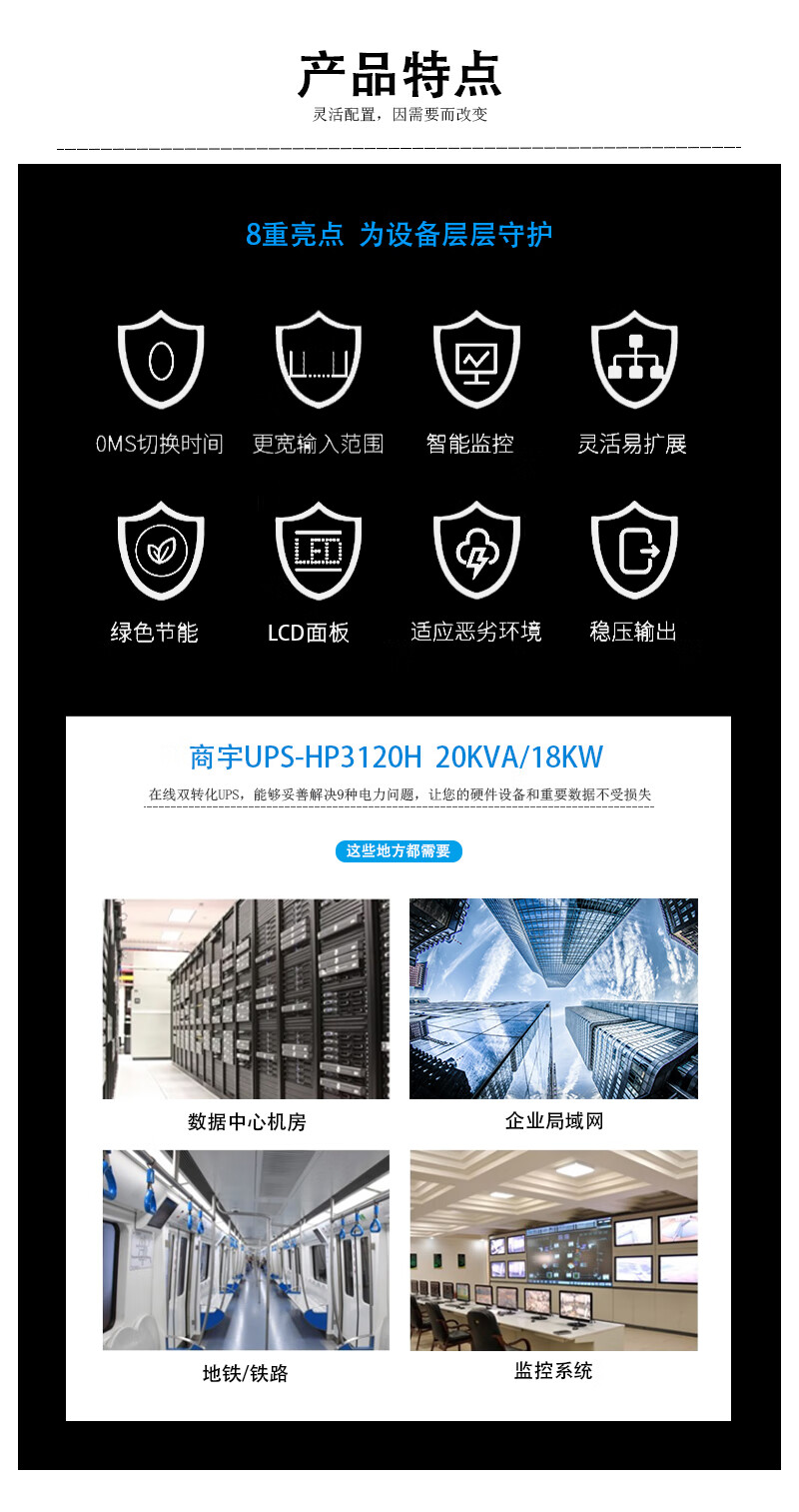 商宇UPS不間斷電源HP3120H在線式高頻機 電腦機房服務器備用電源需外接電池 支持定制 HP3120H 20KVA/18KW續(xù)航8小時 自營
