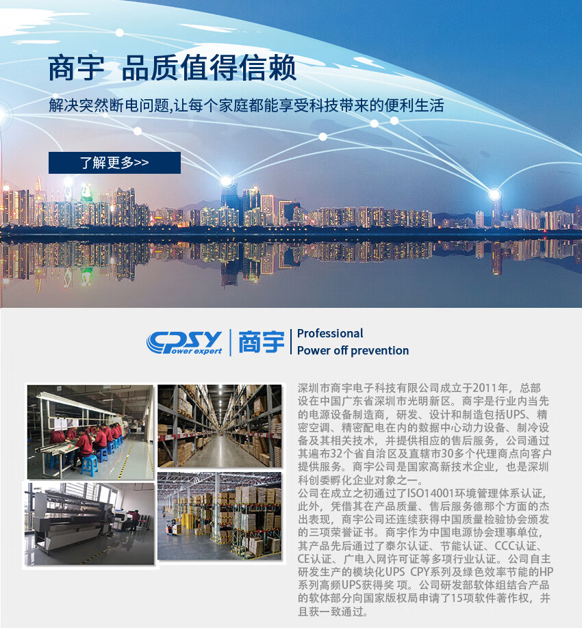 商宇(CPSY) S1000 UPS不間斷電源后備式1KVA/600W辦公電腦斷電續(xù)航60分鐘