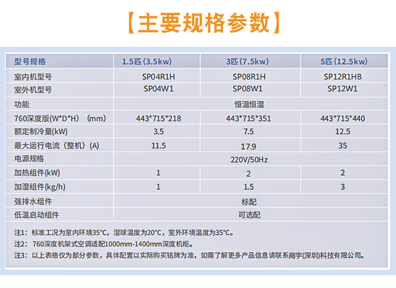商宇機架式精密機房空調(diào)(含內(nèi)外機)SP12R1HB列間精密空調(diào)12.5KW制冷量、恒溫恒濕、正面送風(fēng) 自營