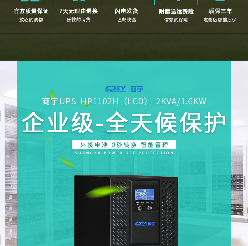 商宇UPS不間斷電源HP1102H在線式2KVA/1.6KW 家用辦公電腦穩(wěn)壓后備電源 續(xù)航套餐 續(xù)航8小時(shí)12節(jié)商宇100AH蓄電池A12電池柜 自營(yíng)