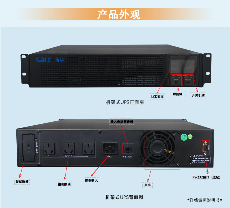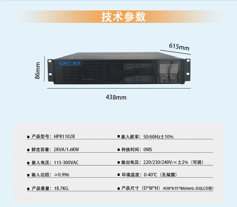 商宇UPS不間斷電源HPR1102B機(jī)架式主機(jī)2KVA/1.6KW可供電腦系統(tǒng)、網(wǎng)絡(luò)設(shè)備等場(chǎng)所使用 自營