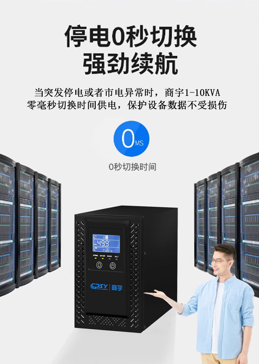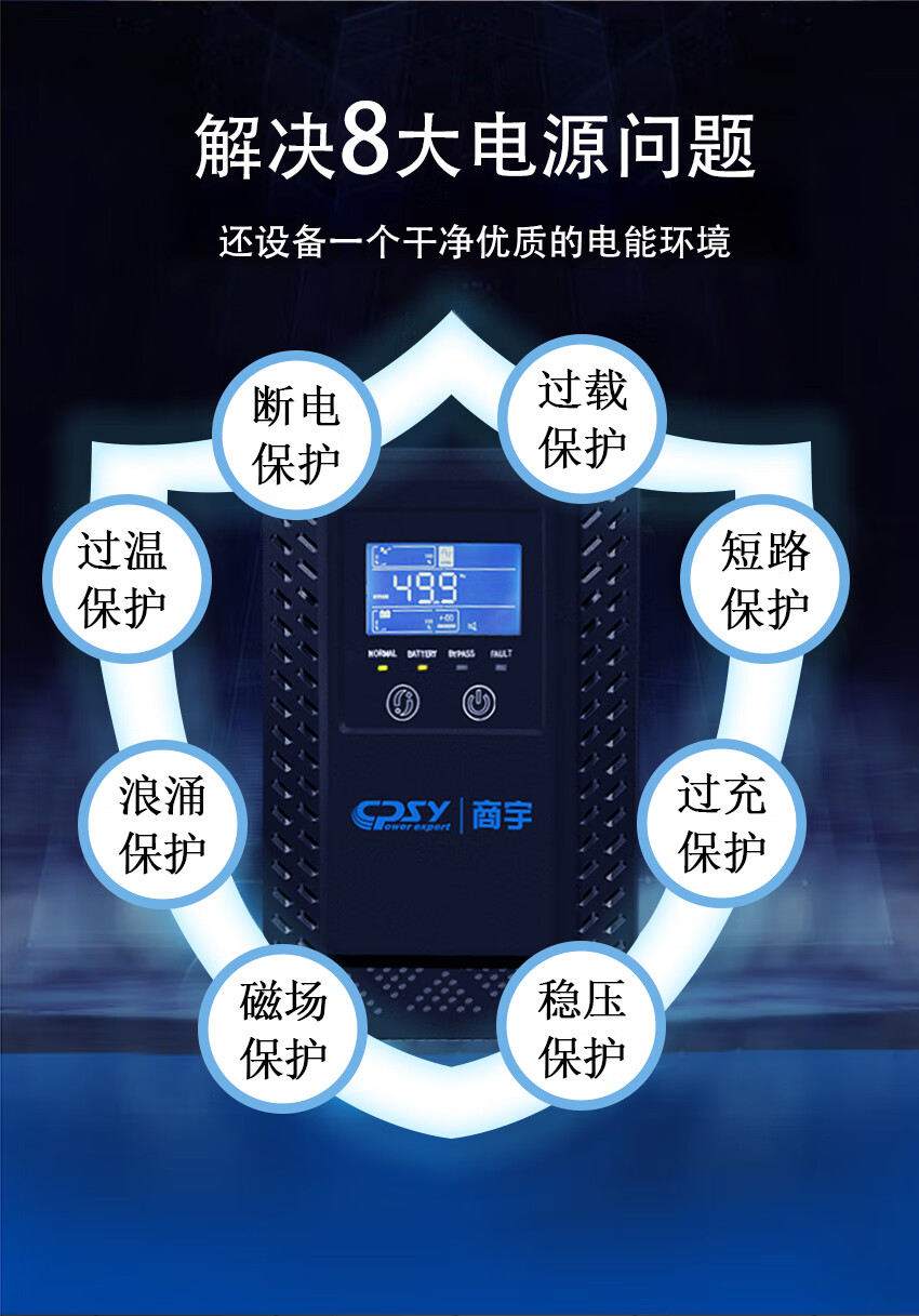 商宇 在線式HP1101B 服務器機房電腦UPS不間斷電源1KVA/0.8KW智能穩(wěn)壓自動開關(guān)機 自營