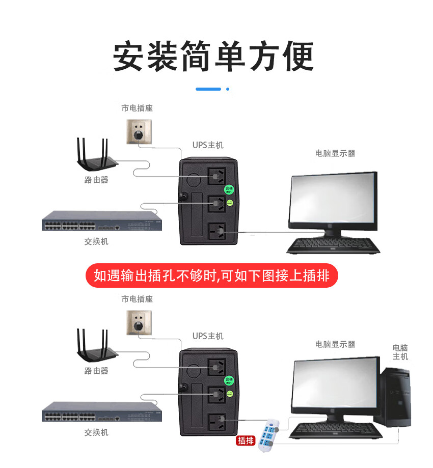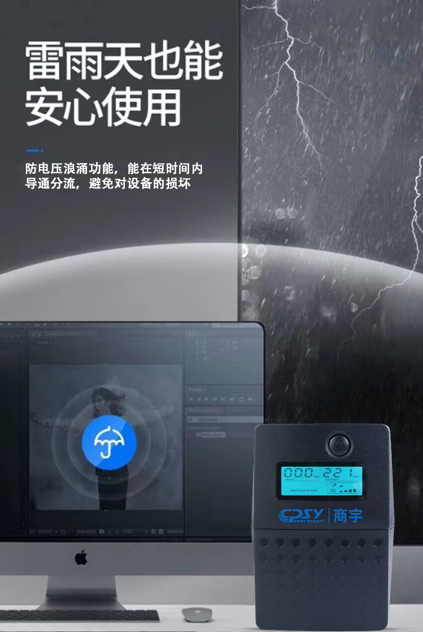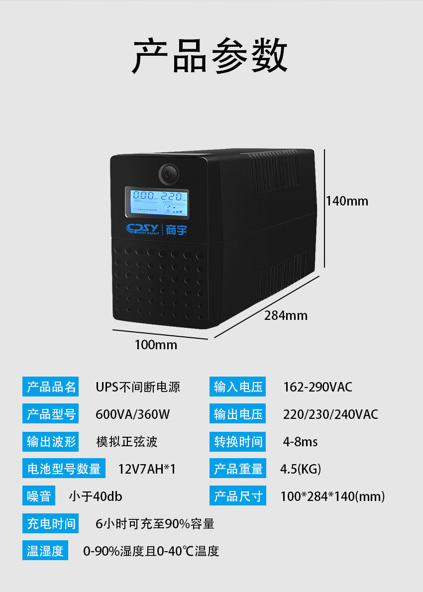 商宇(CPSY) S1000 UPS不間斷電源后備式1KVA/600W辦公電腦斷電續(xù)航60分鐘