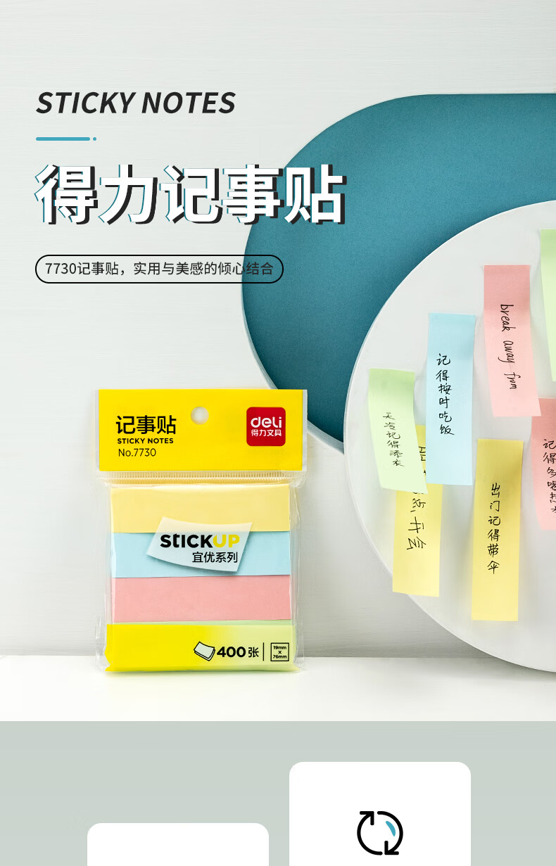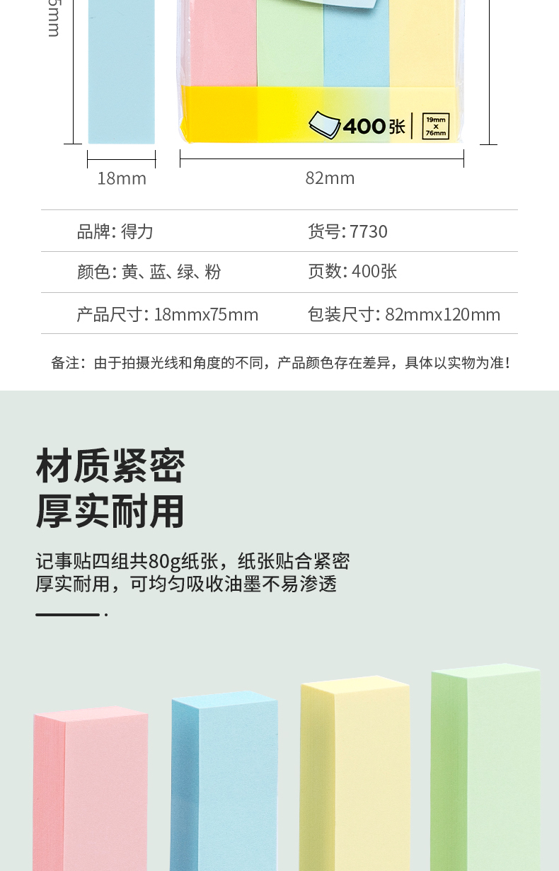 得力(deli)7730 彩色便利貼 正方形可愛(ài)學(xué)生用記事貼 糖果小清新創(chuàng)意商務(wù)便簽本子n次貼批發(fā) 76×19mm 12包 自營(yíng)