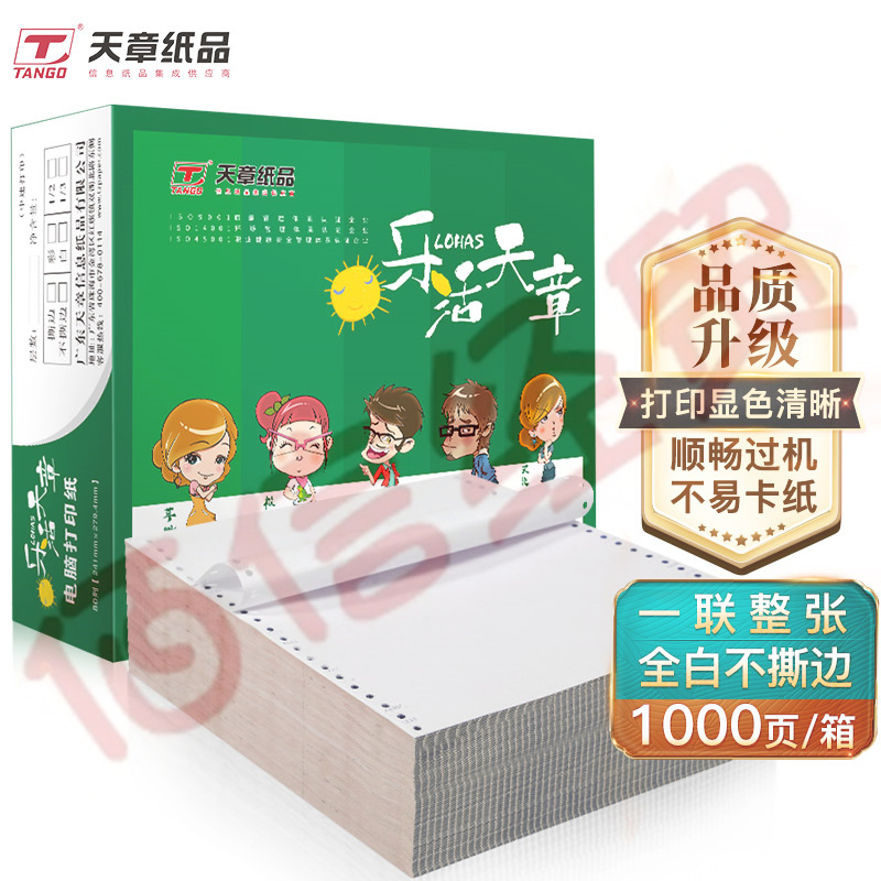 天章(TANGO)樂(lè)活天章 針式打印紙 一聯(lián)整張不撕邊電腦打印紙 全白一聯(lián)打印紙(241-1 全白 1000頁(yè)/箱) 自營(yíng)