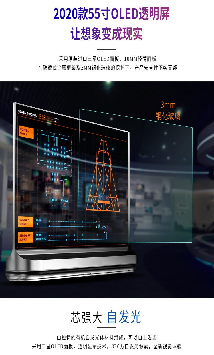 恩騰透明oled顯示屏商場(chǎng)展廳自發(fā)光超薄拼接屏透明顯示屏oled廣告機(jī)播放器 oled顯示屏 自營