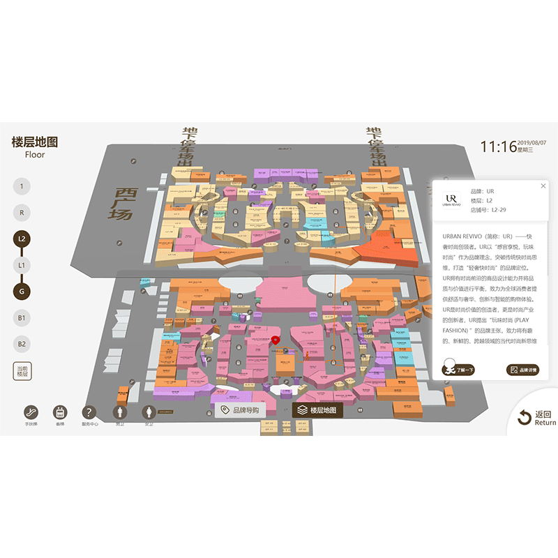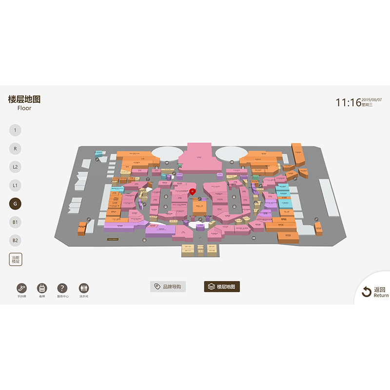 恩騰商場(chǎng)導(dǎo)航軟件標(biāo)識(shí)導(dǎo)向路線圖自助查詢樓層地圖導(dǎo)航終端一體機(jī)系統(tǒng)商場(chǎng)地下室停車場(chǎng)導(dǎo)航軟件 樓層索引機(jī) 定制款橫屏 自營