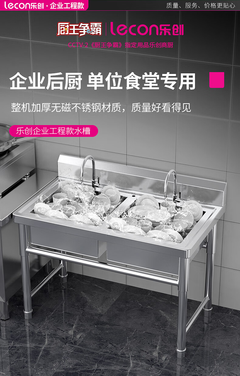 樂創(chuàng)(lecon)商用雙星水池 201不銹鋼洗碗洗菜池洗手盆 LC-J-GSC02【企業(yè)工程款】