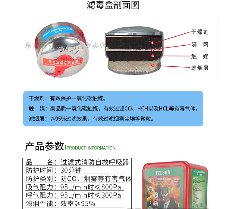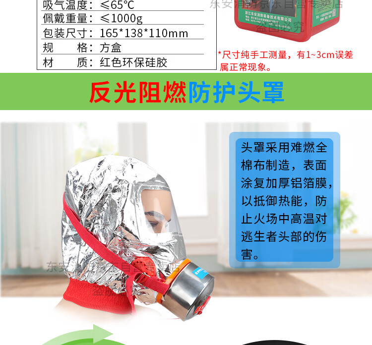 東安防毒面具過濾式消防自救呼吸器火災(zāi)逃生面具防火防煙逃生面罩環(huán)保硅膠面罩方盒