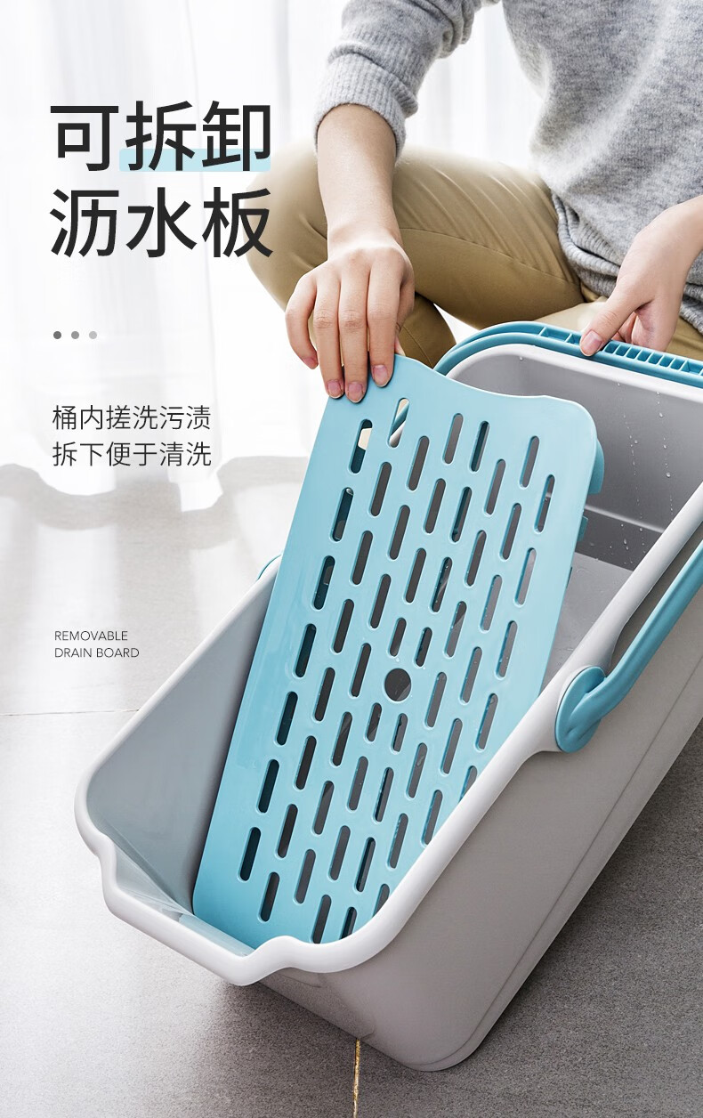 美麗雅拖把桶 手提塑料水桶多功能清潔桶 膠棉平板拖把擠水拖清洗桶 大號(hào)膠棉地拖清潔桶(5個(gè)起售) 自營