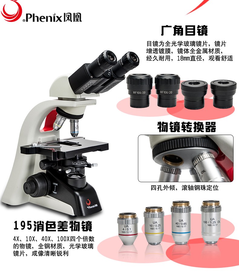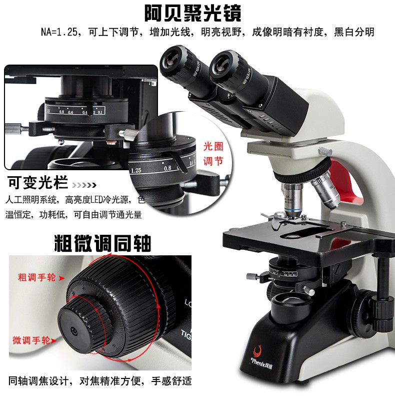 ¥310.40鳳凰 Phenix PH20-1A31L-A 單目生物顯微鏡640倍高倍高清家用實(shí)驗(yàn)教學(xué)