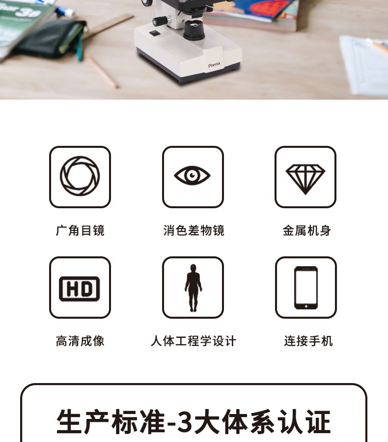 鳳凰 Phenix PH20-1A31L-A 單目生物顯微鏡640倍高倍高清家用實驗教學(xué)