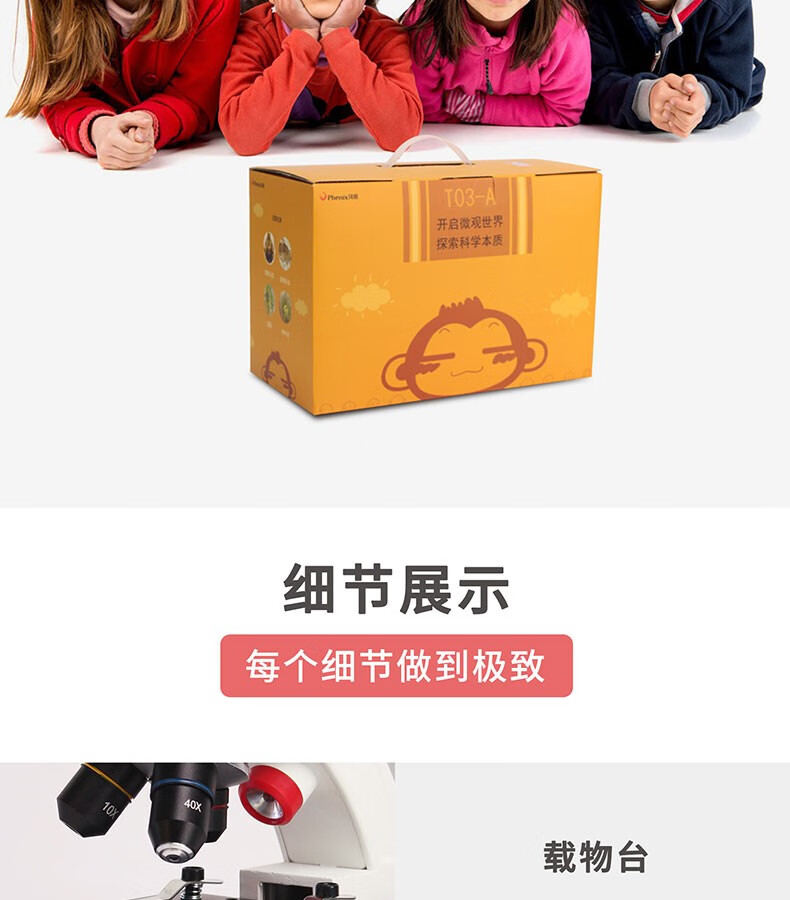 ¥310.40鳳凰 Phenix PH20-1A31L-A 單目生物顯微鏡640倍高倍高清家用實(shí)驗(yàn)教學(xué)