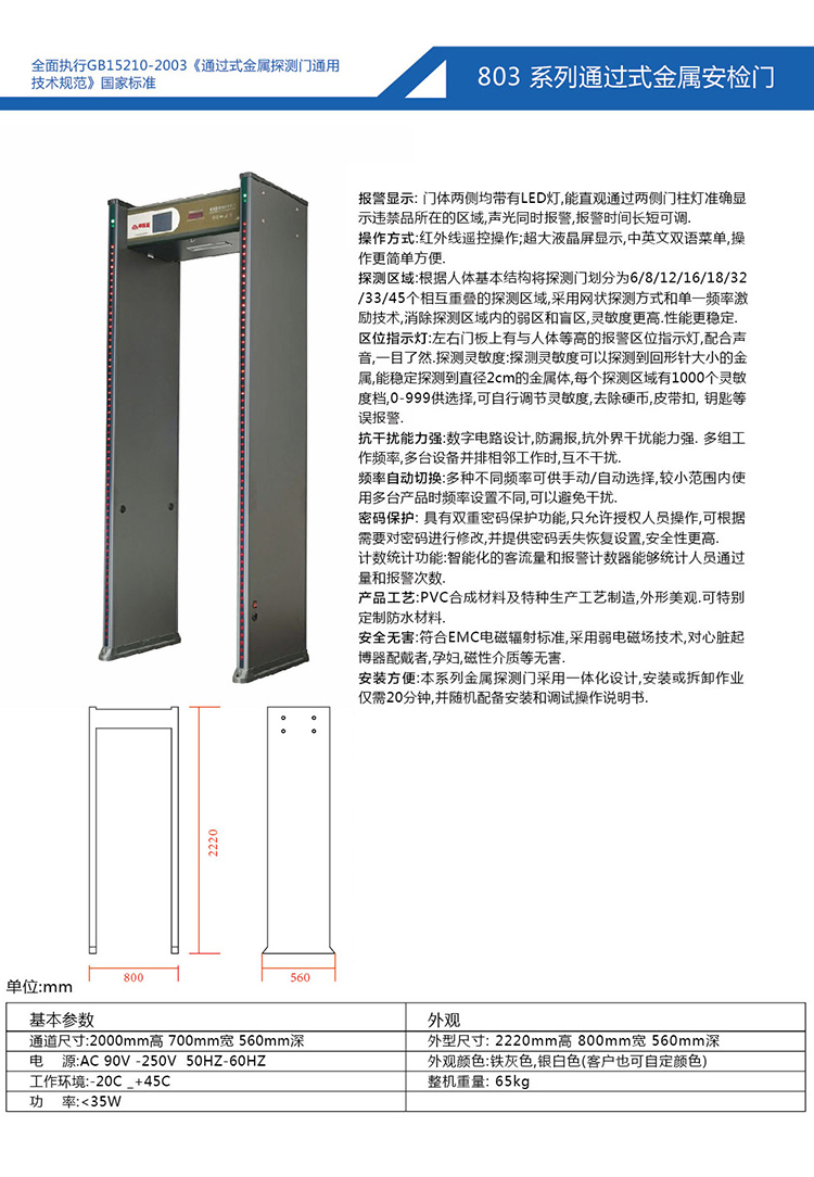 中科聯(DETECTOR ZK)通過式安檢門 發(fā)燒金屬探測器考場手機探測儀工廠地鐵防盜報警儀定制 ZK-803A 自營