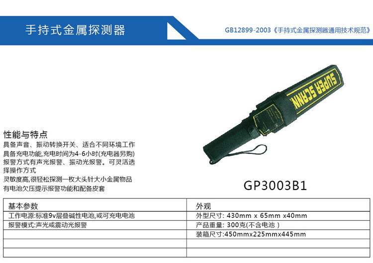 中科聯(lián)(DETECTOR ZK)手持式金屬探測(cè)器安檢儀工廠車站金屬探測(cè)儀檢測(cè)棒掃描儀充電套裝定制 ZK-GP3003B1 自營(yíng)