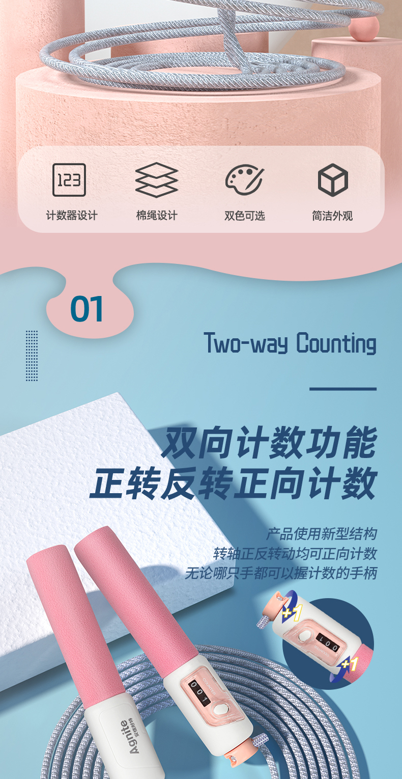 得力(deli)雙向機械計數(shù)跳繩 兒童成人健身訓(xùn)練跳繩F4003(粉色) 自營