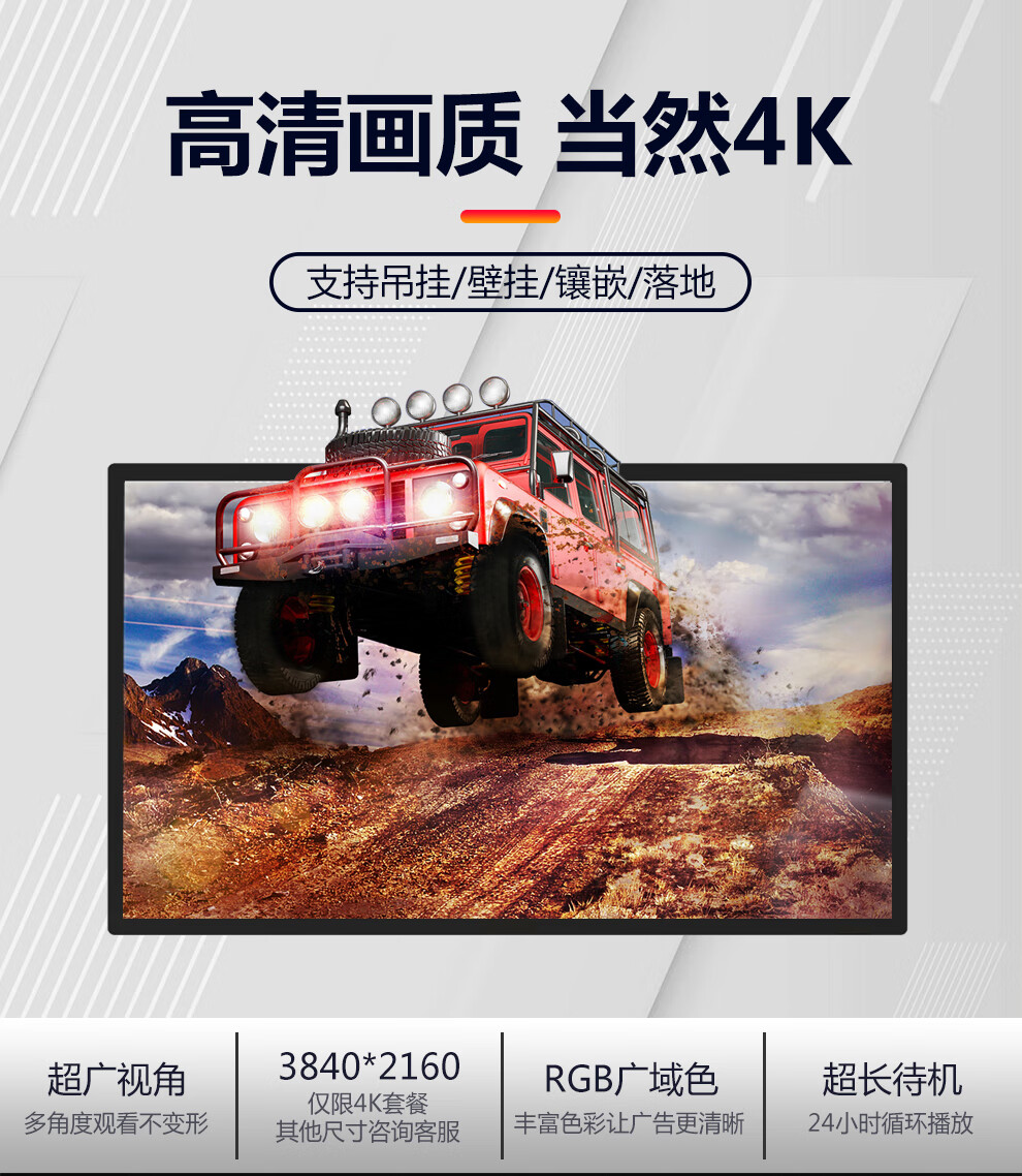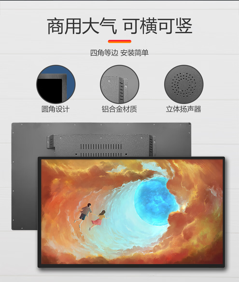 博朗克 壁掛廣告機(jī)55英寸智能液晶屏顯示器樓宇酒店電梯廣告機(jī)橫豎屏切換商用大屏 自營