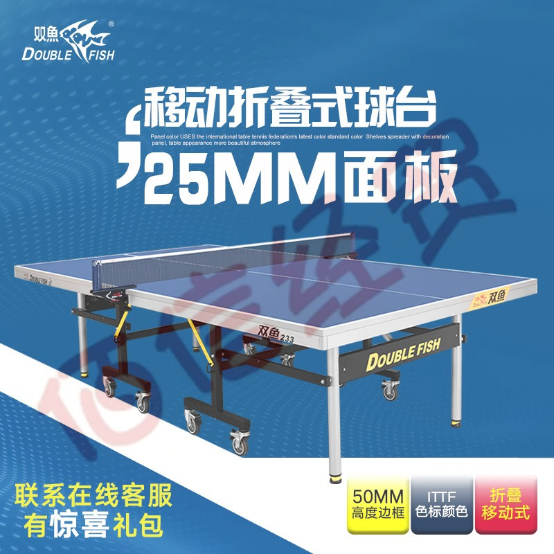 雙魚(DOUBLE FISH) 乒乓球桌233大賽標(biāo)準(zhǔn)ITTF認(rèn)證乒乓球臺室內(nèi)可移動折疊乒乓球案子 自營