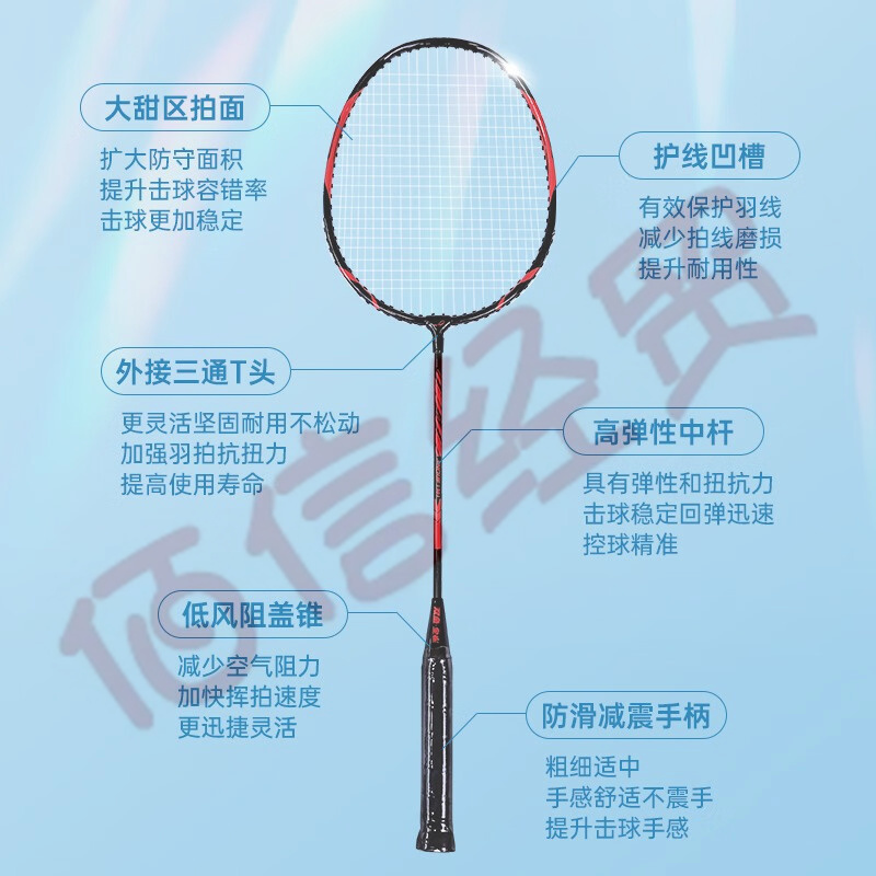 雙魚(DOUBLE FISH) 【新品】雙魚羽毛球拍2支超輕耐用型雙拍套餐入門訓練羽拍兒童成人 黑紅色-1301 自營