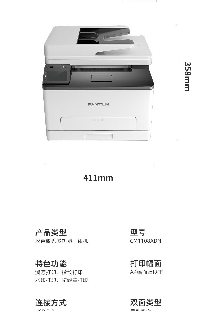 奔圖(PANTUM) CM1108ADN 彩色激光多功能打印機 自動雙面、指紋打印 連續(xù)復(fù)印掃描 自營