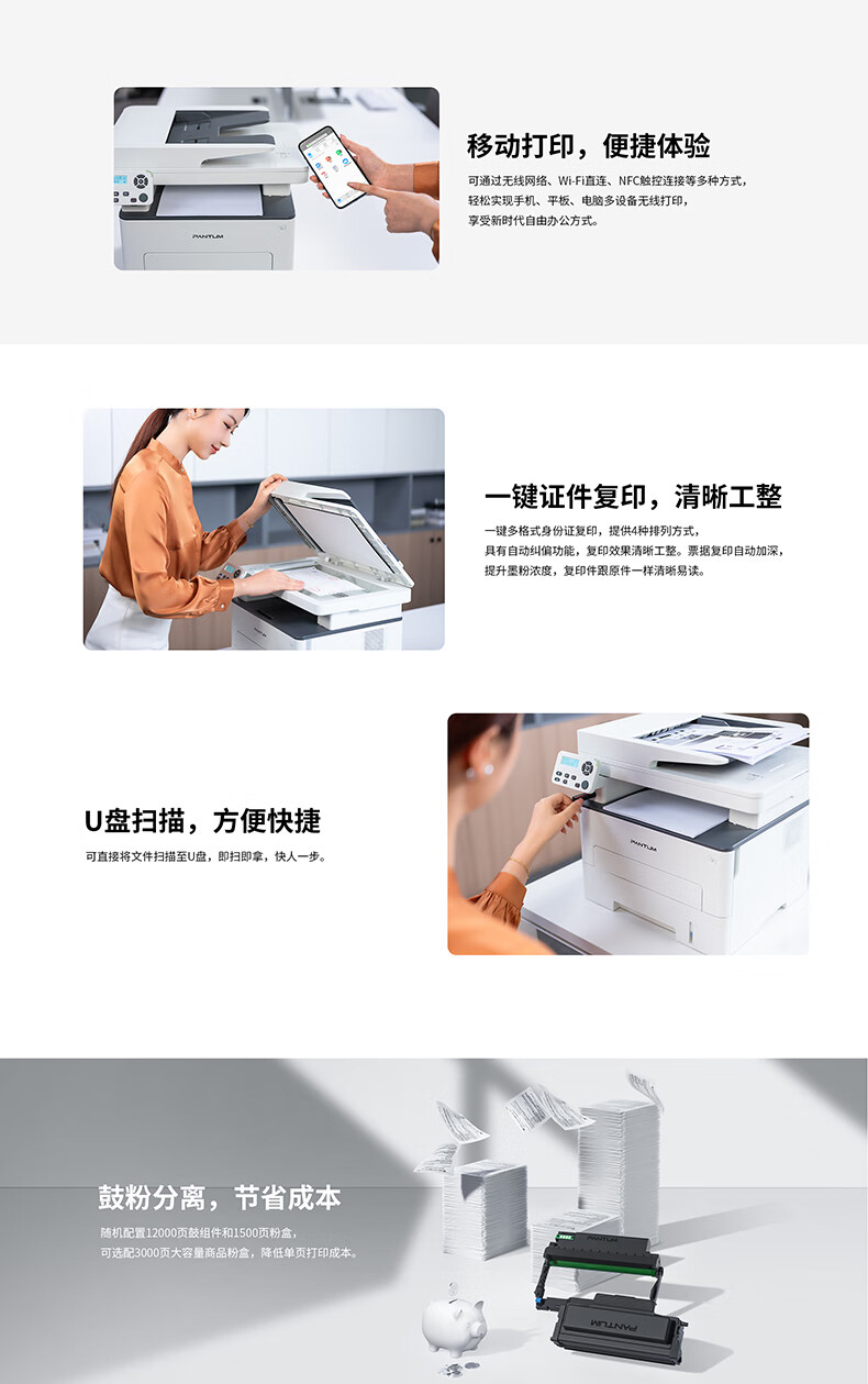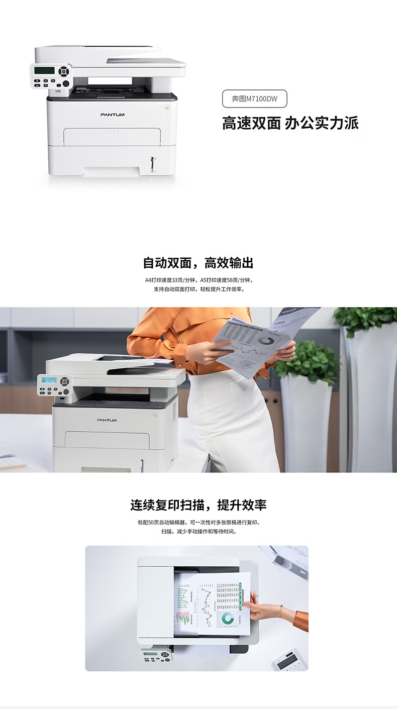 奔圖(PANTUM)M7100DW黑白激光多功能一體機(打印 復印 掃描) 自營