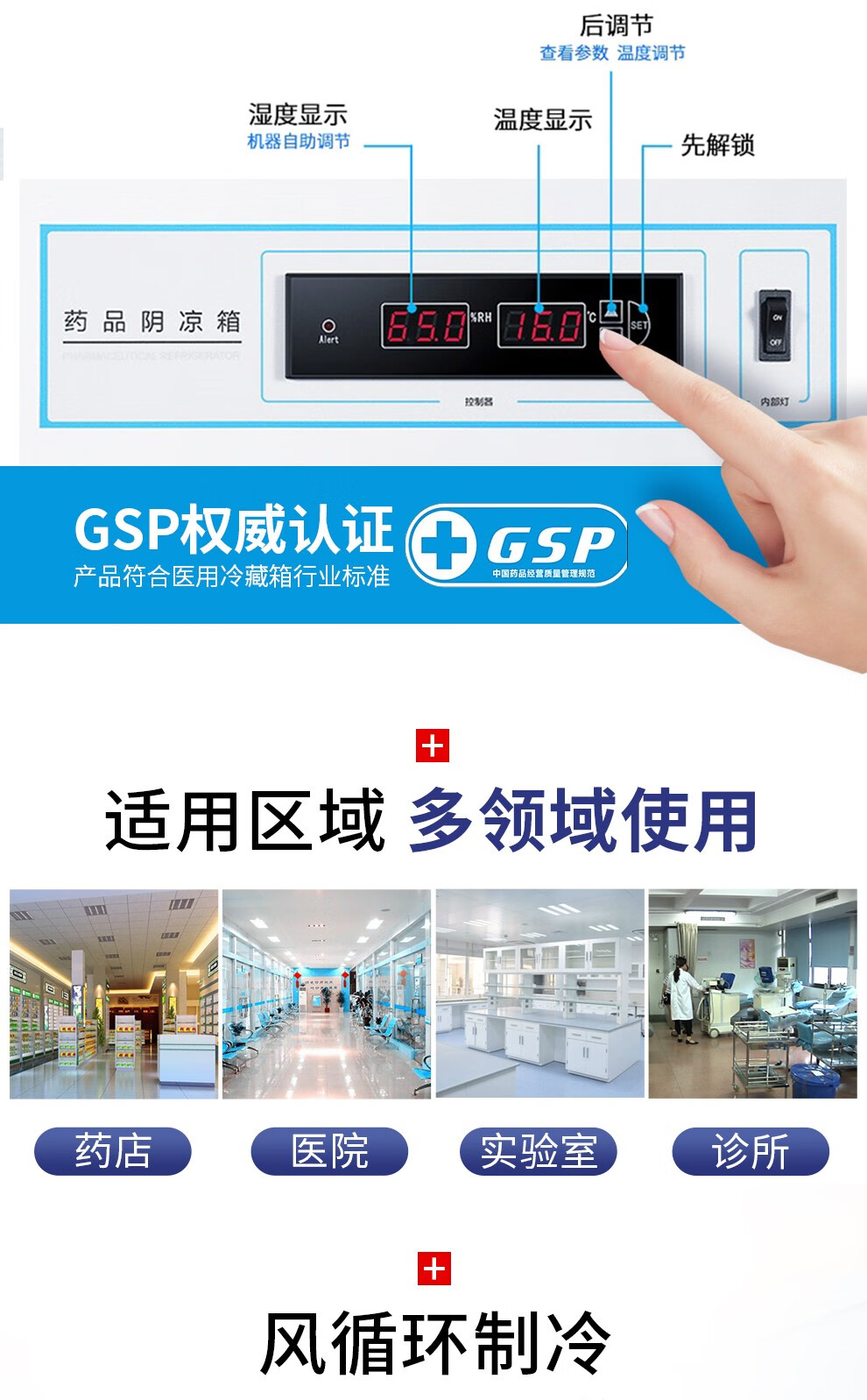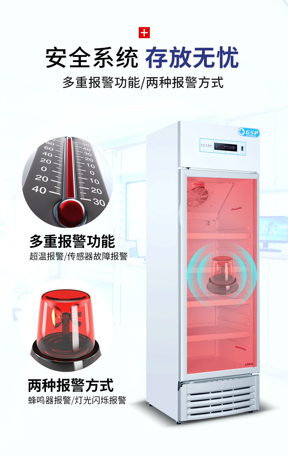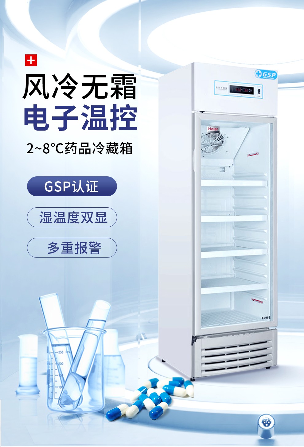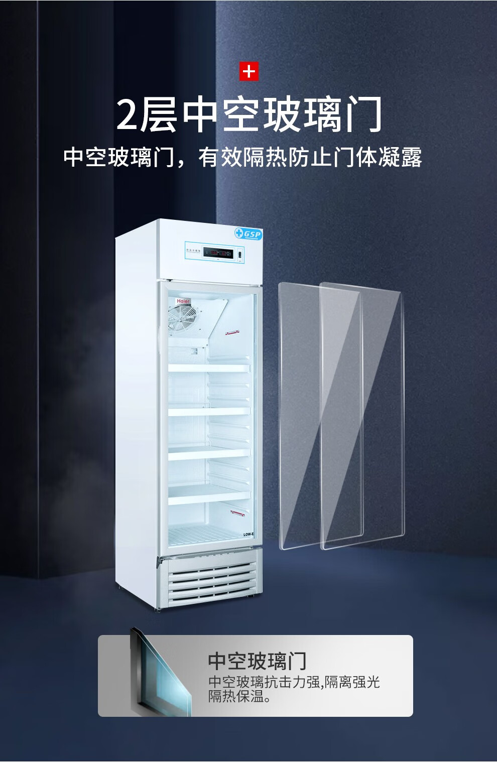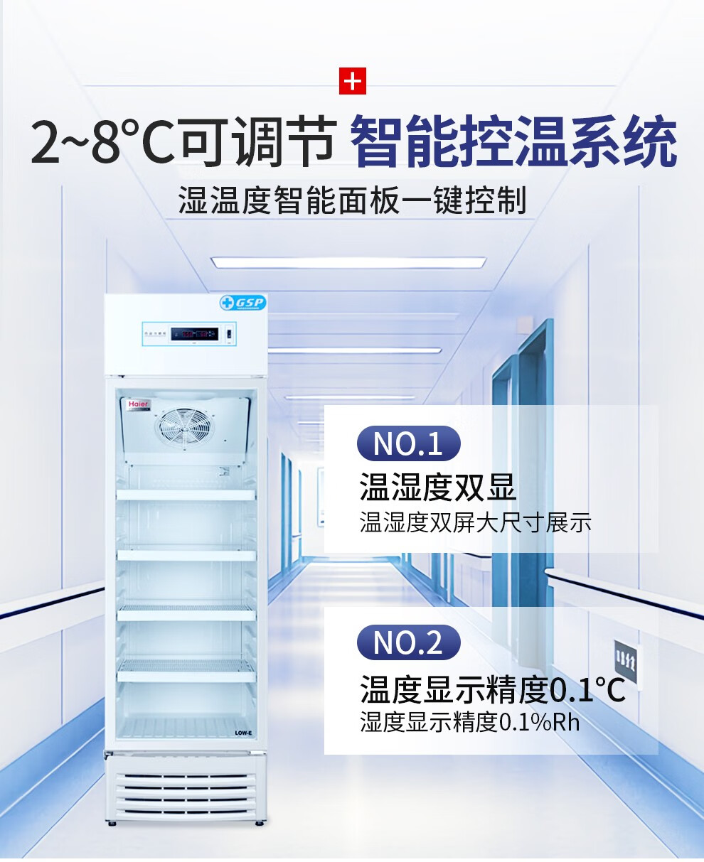 海爾(Haier)310升立式2-8℃藥品冷藏箱 立式單溫風(fēng)冷展示冰柜 醫(yī)藥GSP單門保鮮冷柜HYC-310S