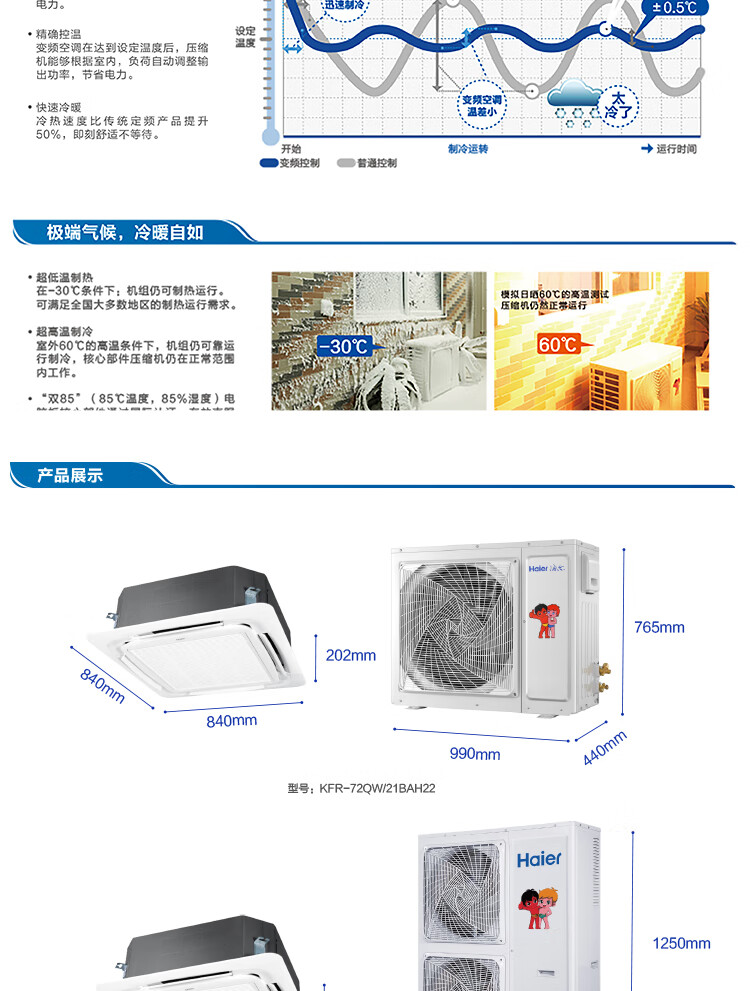 ¥11155.00海爾(Haier)3匹 二級能效 變頻冷暖 吸頂式天井機空調(diào) KFR-72QW/21BAH22 企業(yè)專享