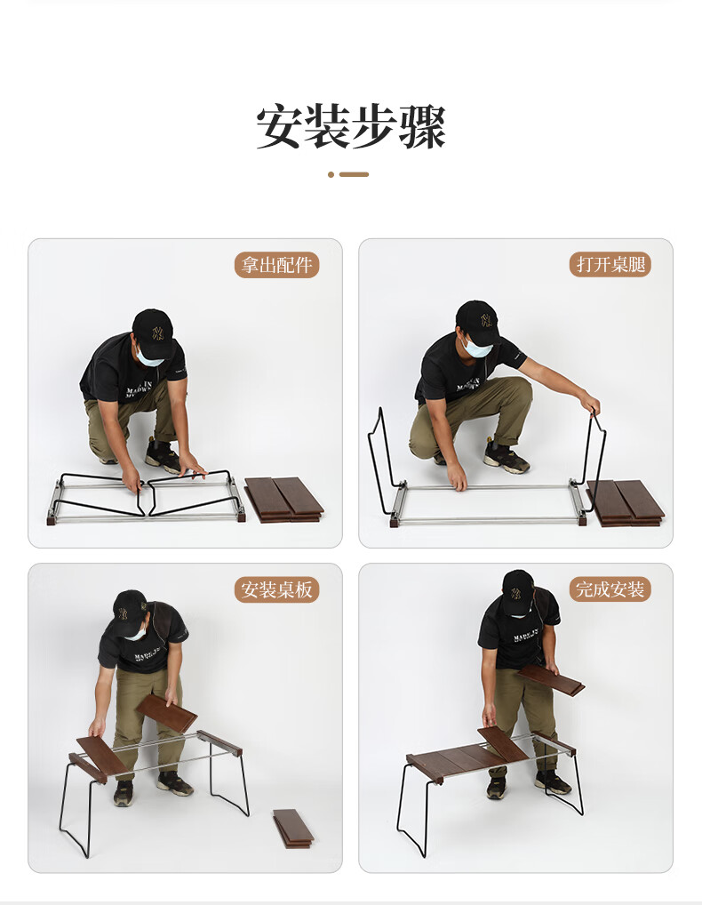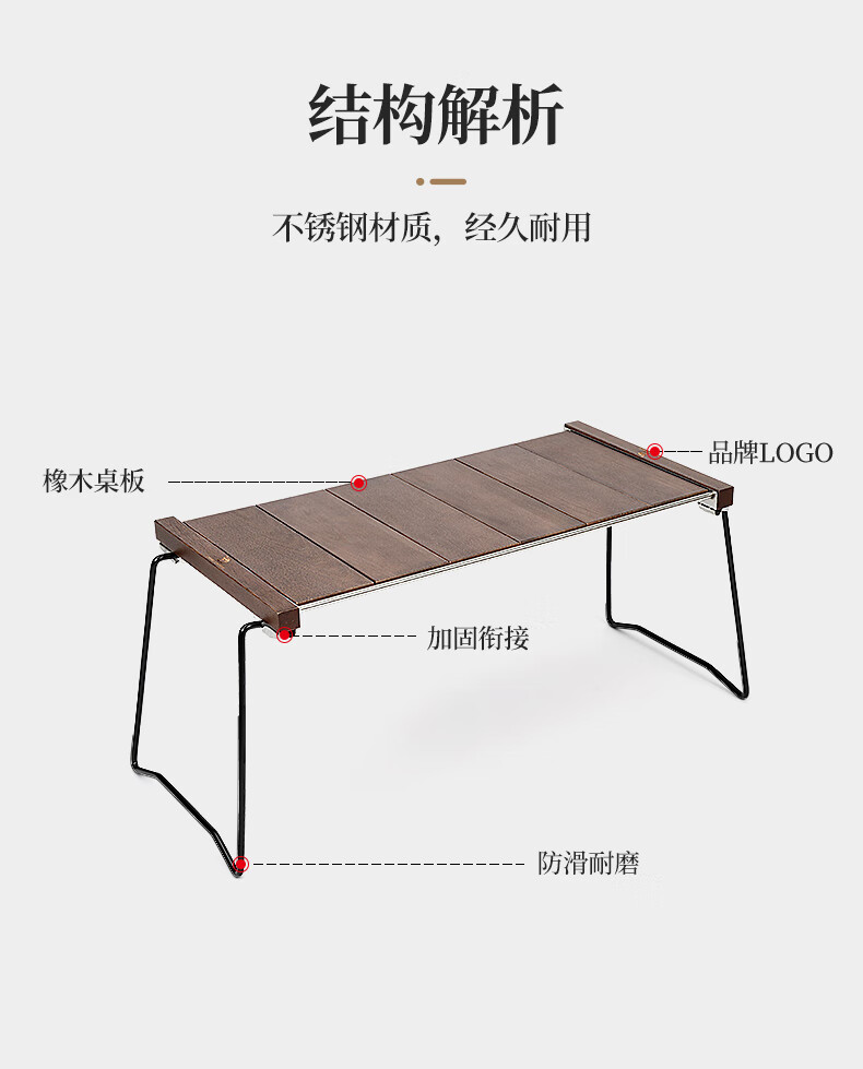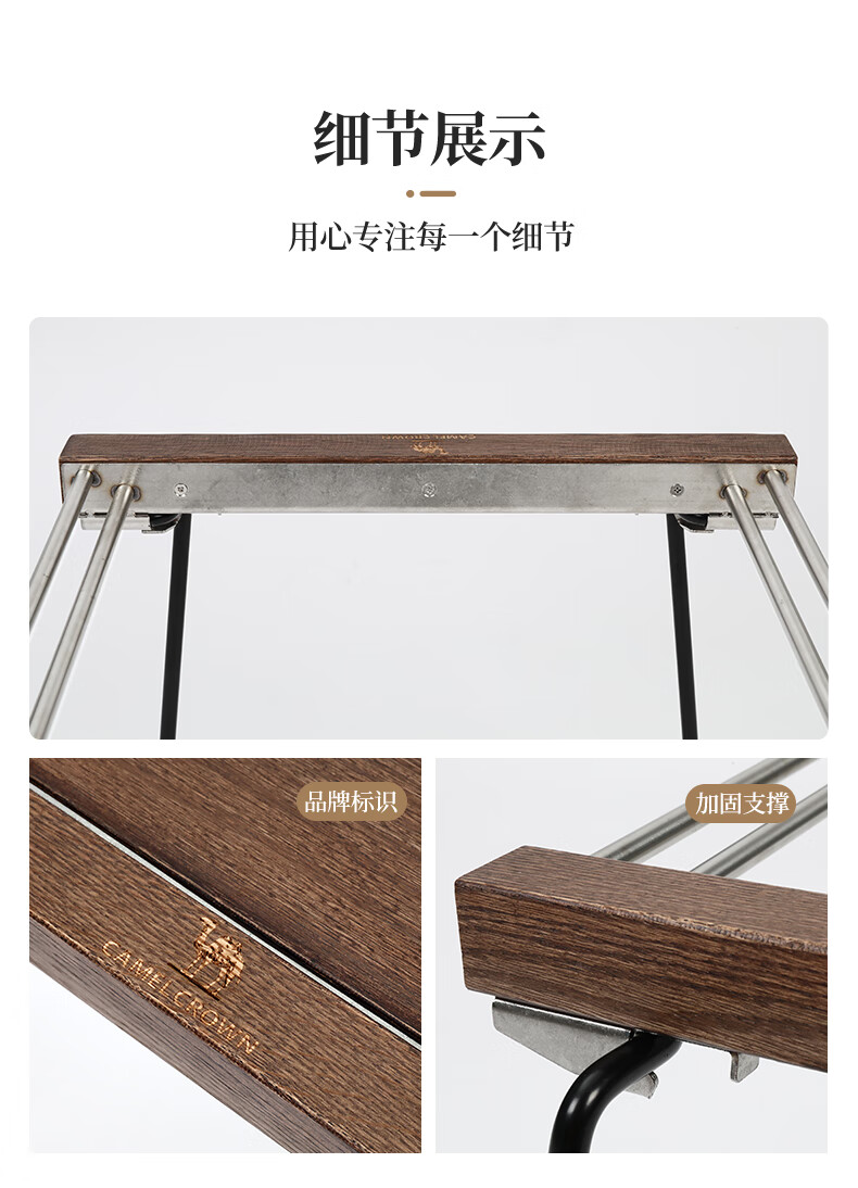 駱駝CAMELCROWN戶外精致露營IGT桌子便攜不銹鋼易搭建野營野餐折疊桌野外燒烤桌 1J32250898,胡桃木色 自營