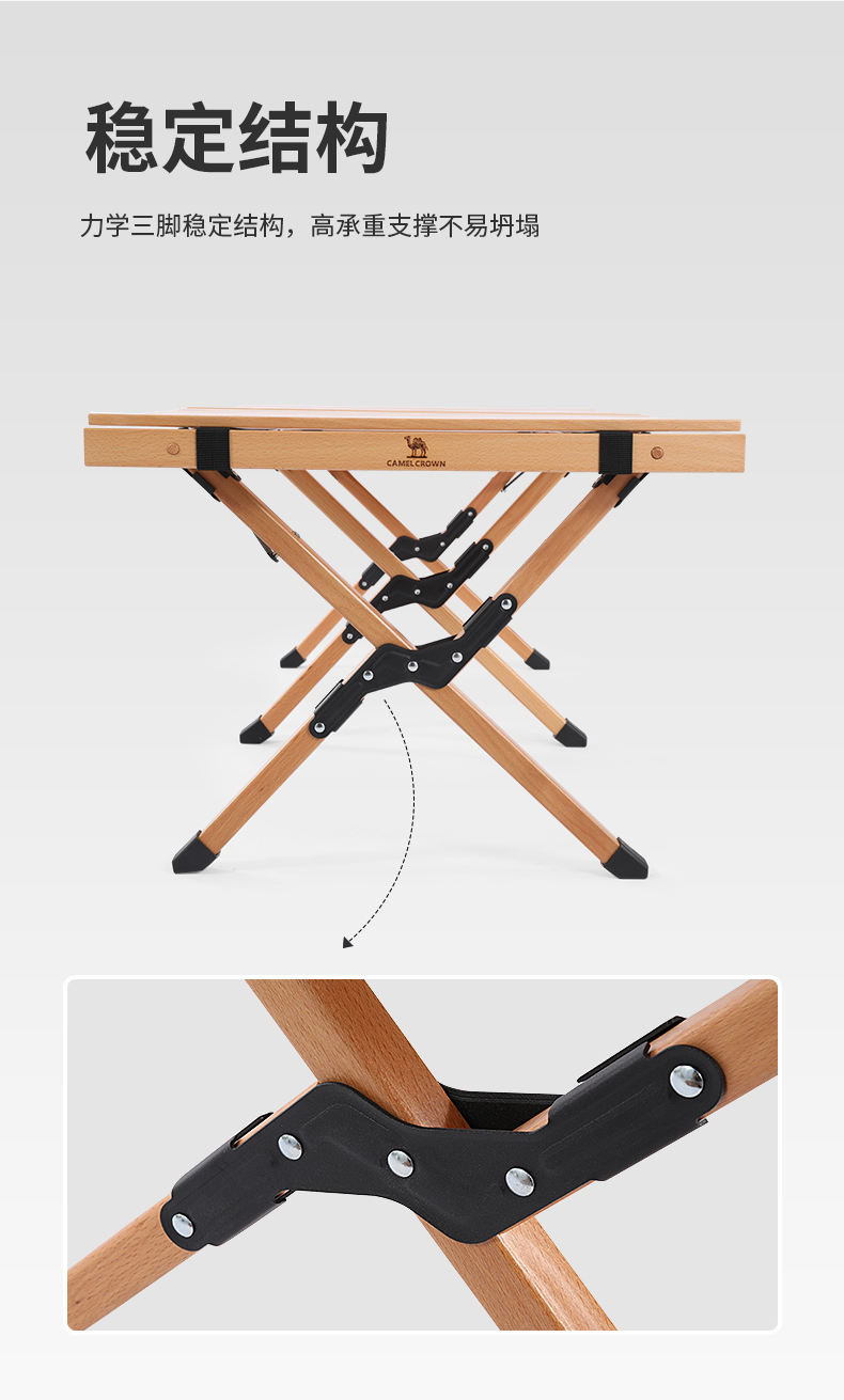駱駝CAMELCROWN戶外露營木質(zhì)蛋卷桌庭院燒烤野營野餐櫸木桌子便攜折疊桌椅套餐 A2S31A102,原木色(大號) 自營