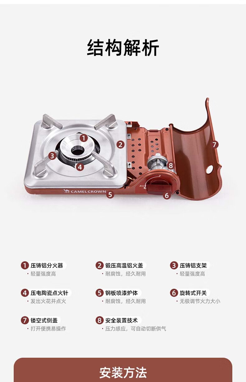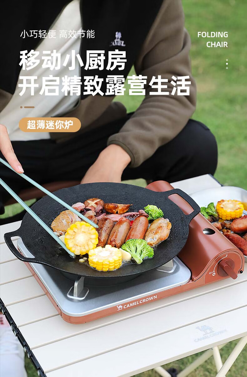 駱駝CAMELCROWN戶外便攜卡式爐火鍋家用野外爐具磁爐露營燃?xì)庠顮t 1J32267508,不銹鋼雙頭爐 自營