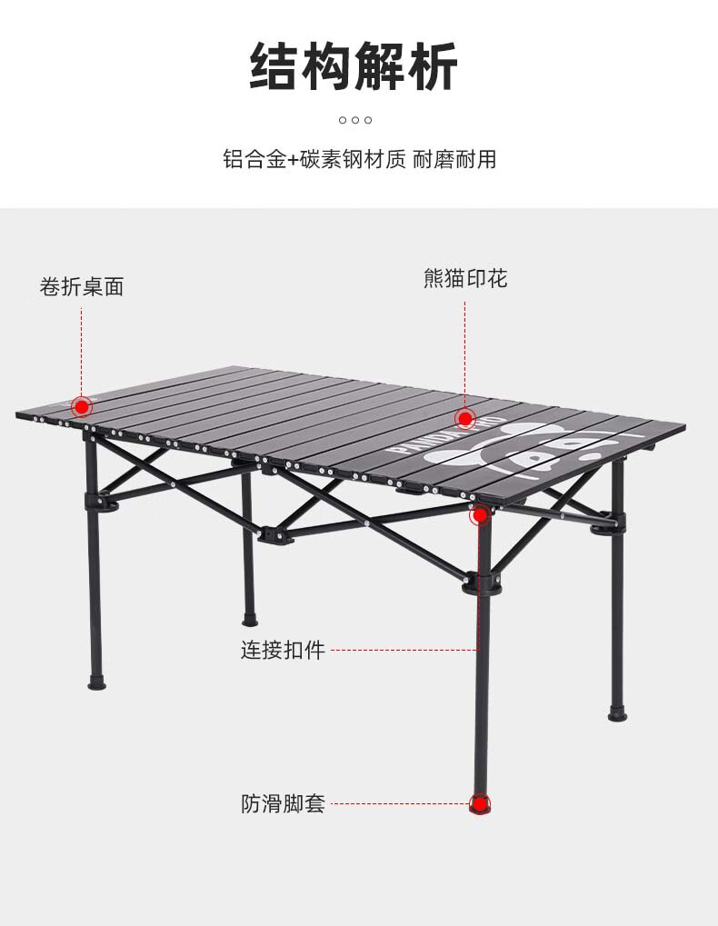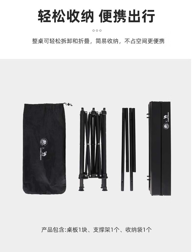 駱駝CAMELCROWN戶外折疊桌鋁合金露營桌子便攜式超輕野餐桌家用公園燒烤野營裝備 1J32257502,折疊桌,黑色 自營