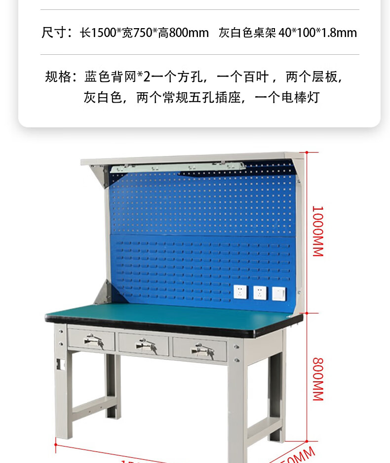 京中柜 重型工作臺(tái)長(zhǎng)1500*寬750*高800mm含凳子(不含上樓和安裝) 自營(yíng)
