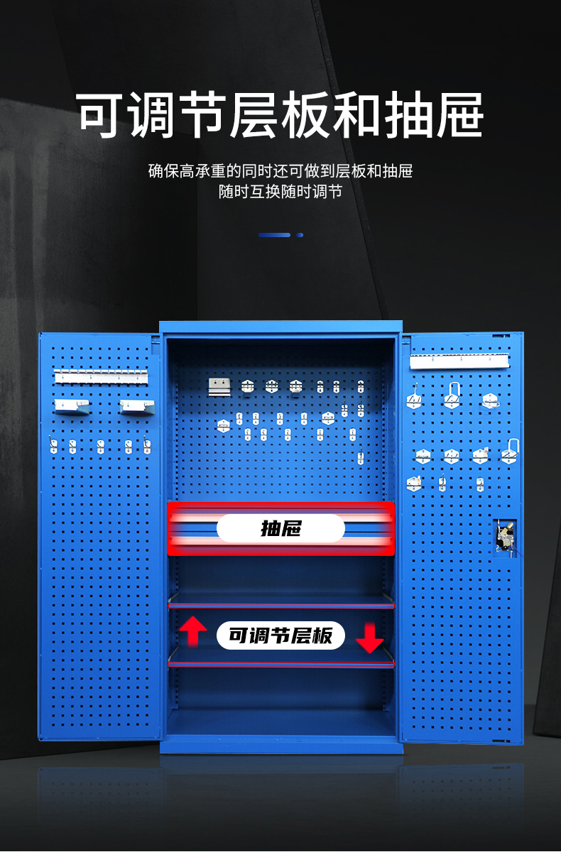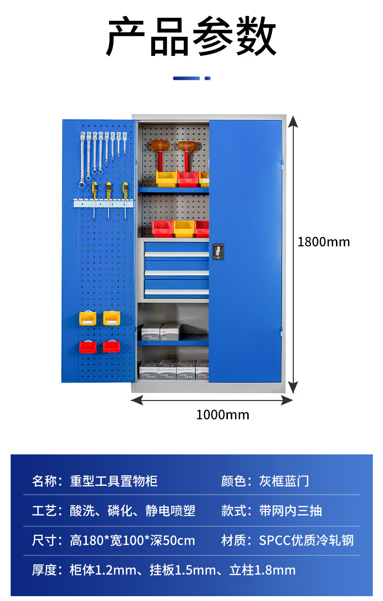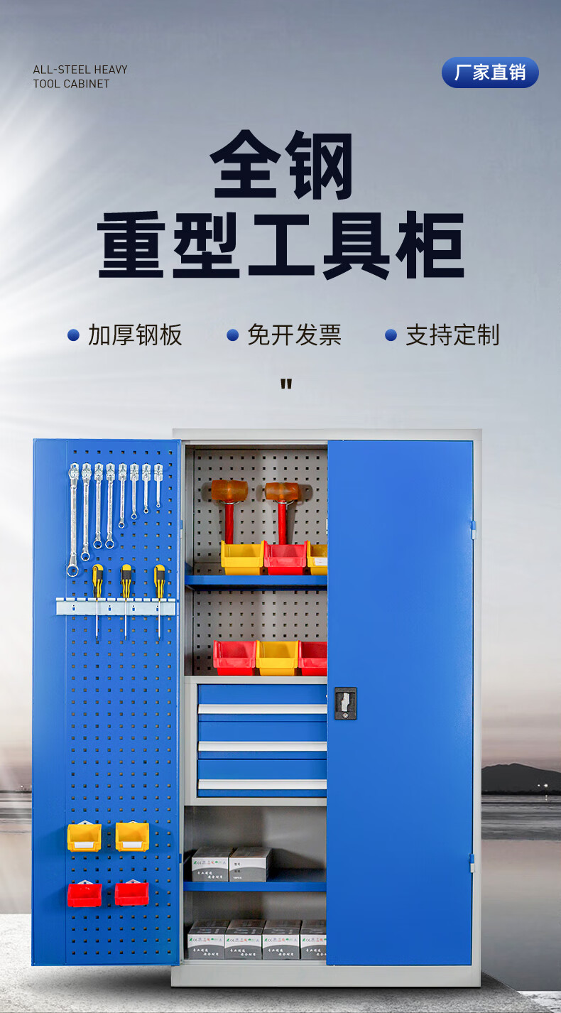 京中柜 重型五金工具柜加厚儲物柜工廠車間整理柜內(nèi)三抽灰藍色帶掛板工具柜(不含上樓和安裝) 自營
