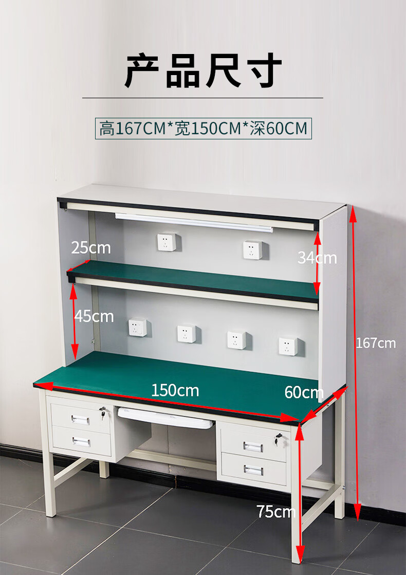 京中柜 定制雙層重型工作臺(tái) 吊四抽+雙掛板 1670*1500*600mm帶插座、燈幫(不含上樓和安裝)