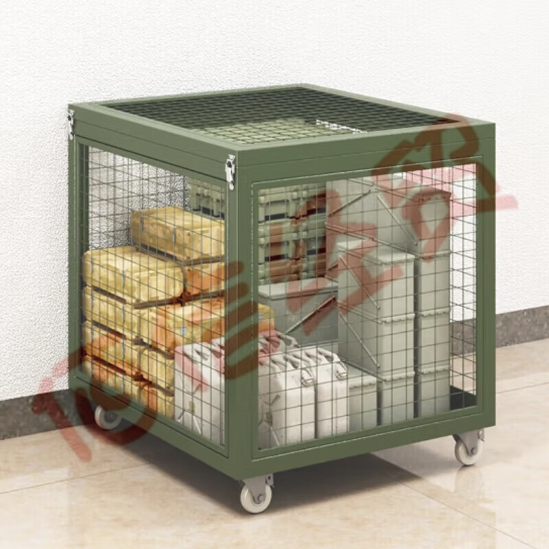 京中柜 軍綠色移動(dòng)網(wǎng)箱倉儲(chǔ)籠可移動(dòng)貨架野營物資周轉(zhuǎn)鐵箱帶輪定制(不含上樓和安裝) 自營