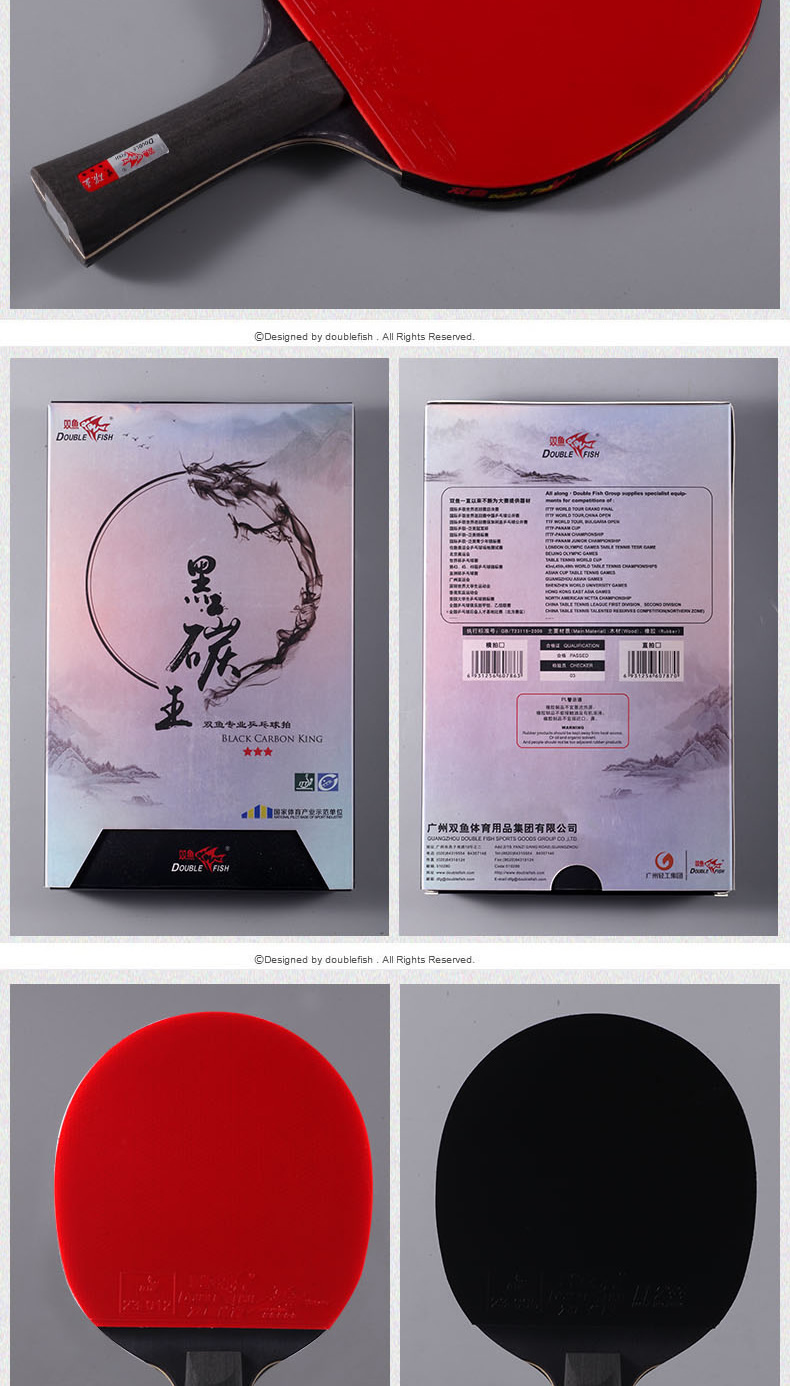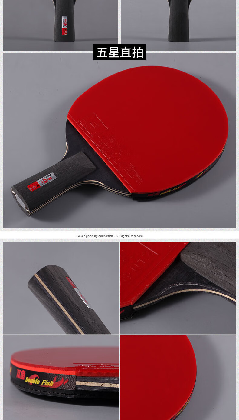 雙魚黑紅碳王乒乓球拍 碳纖維乒乓球拍 快攻型球拍 紅碳王五星 乒乓球拍直拍(1支)