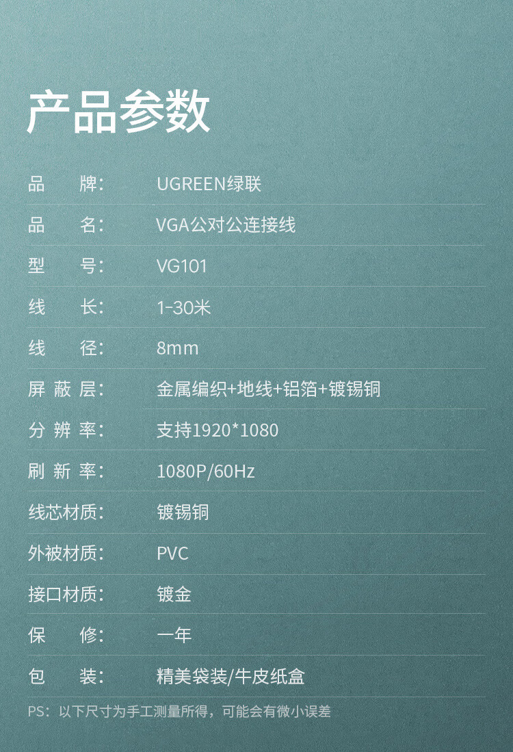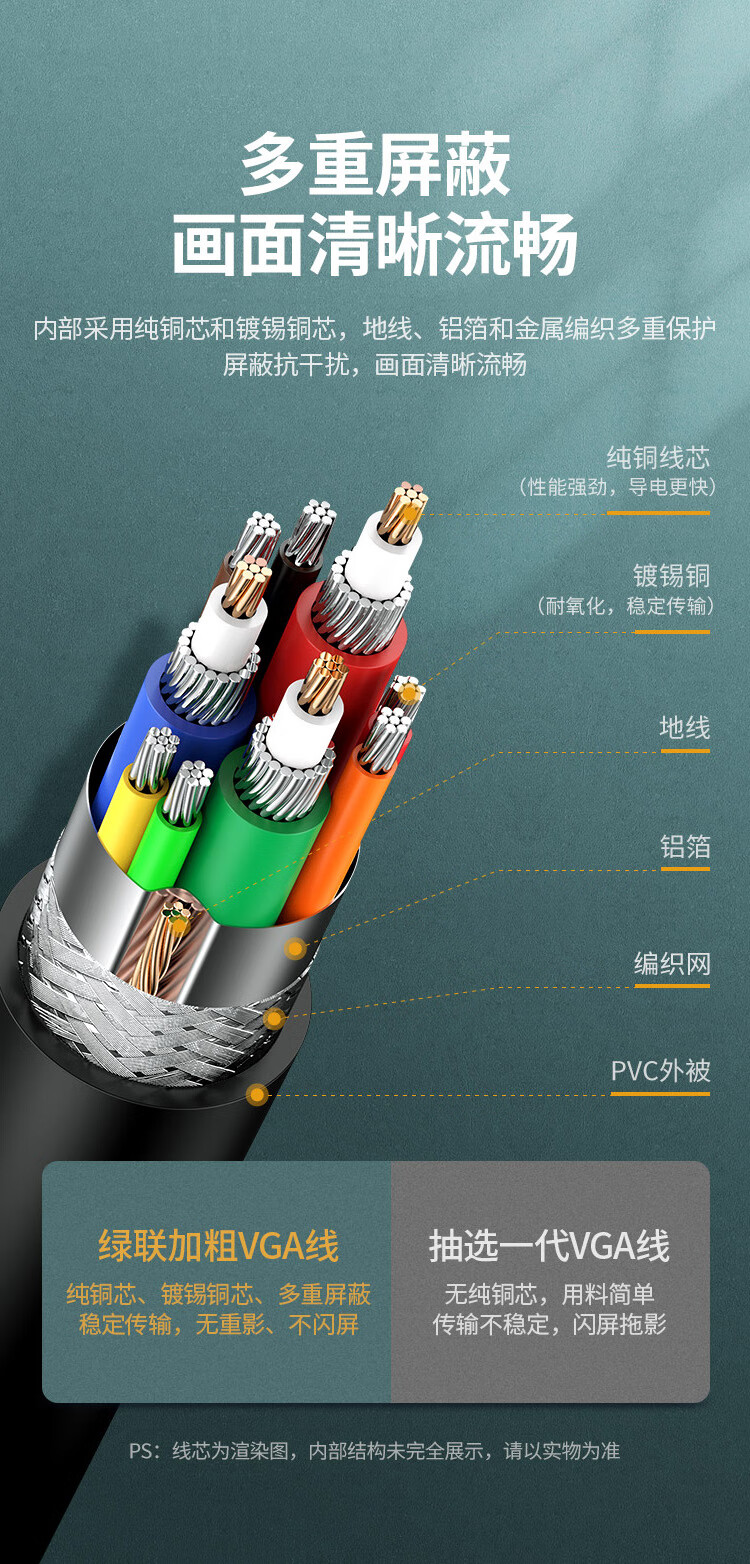 綠聯(lián)(UGREEN)VGA公對公連接線5米/根黑色