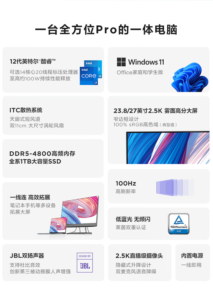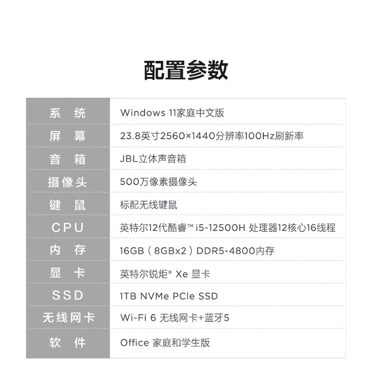 聯(lián)想(Lenovo)小新Pro 24 銀 i5-12500H 16G 1TSSD 5M攝像頭 W11 EOS無線鍵鼠 2.5K高分屏