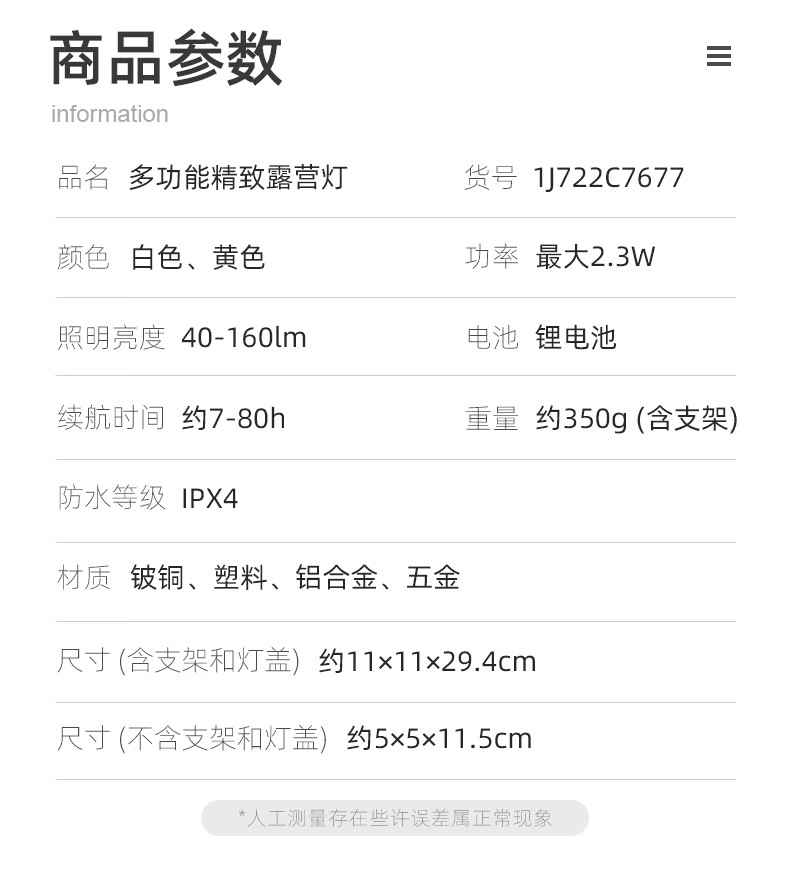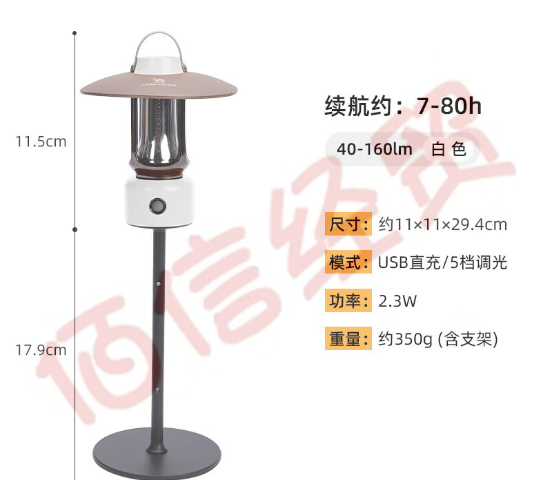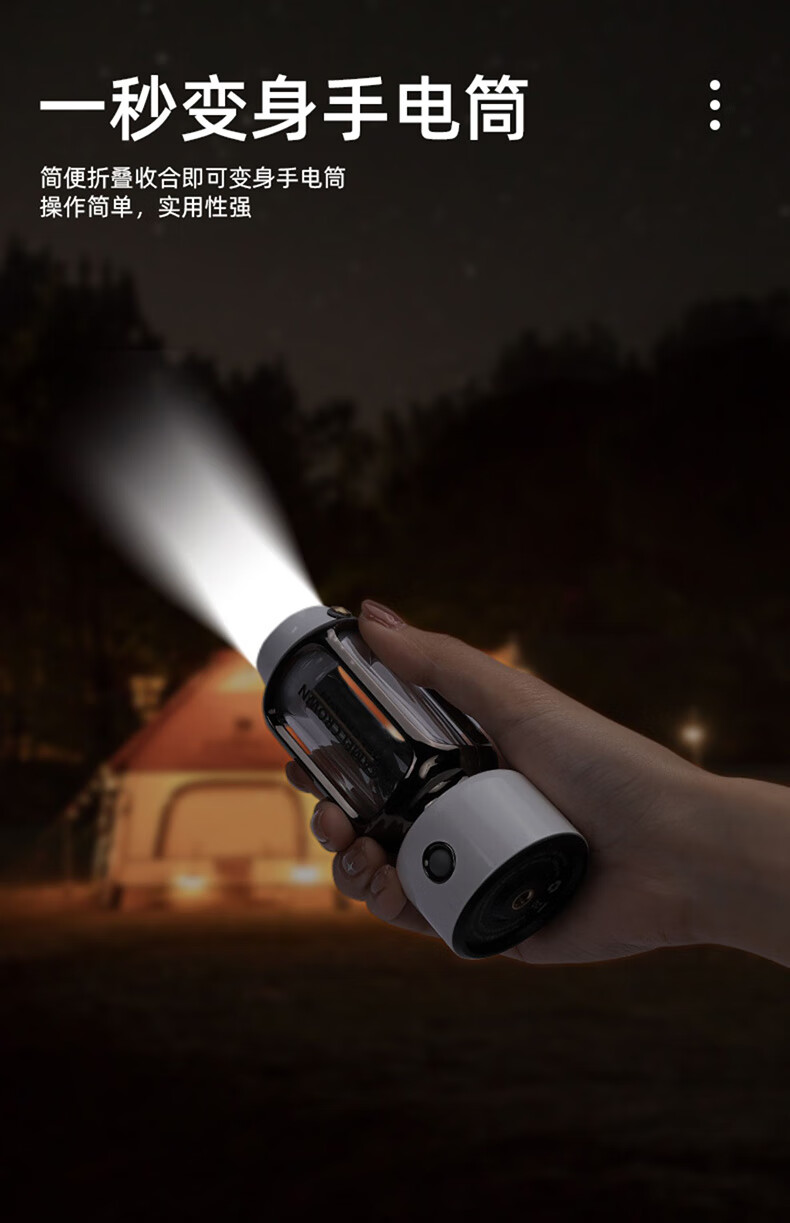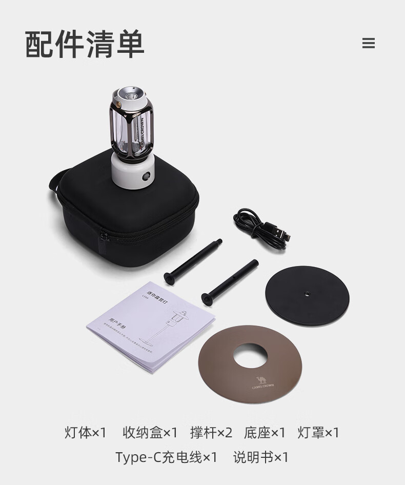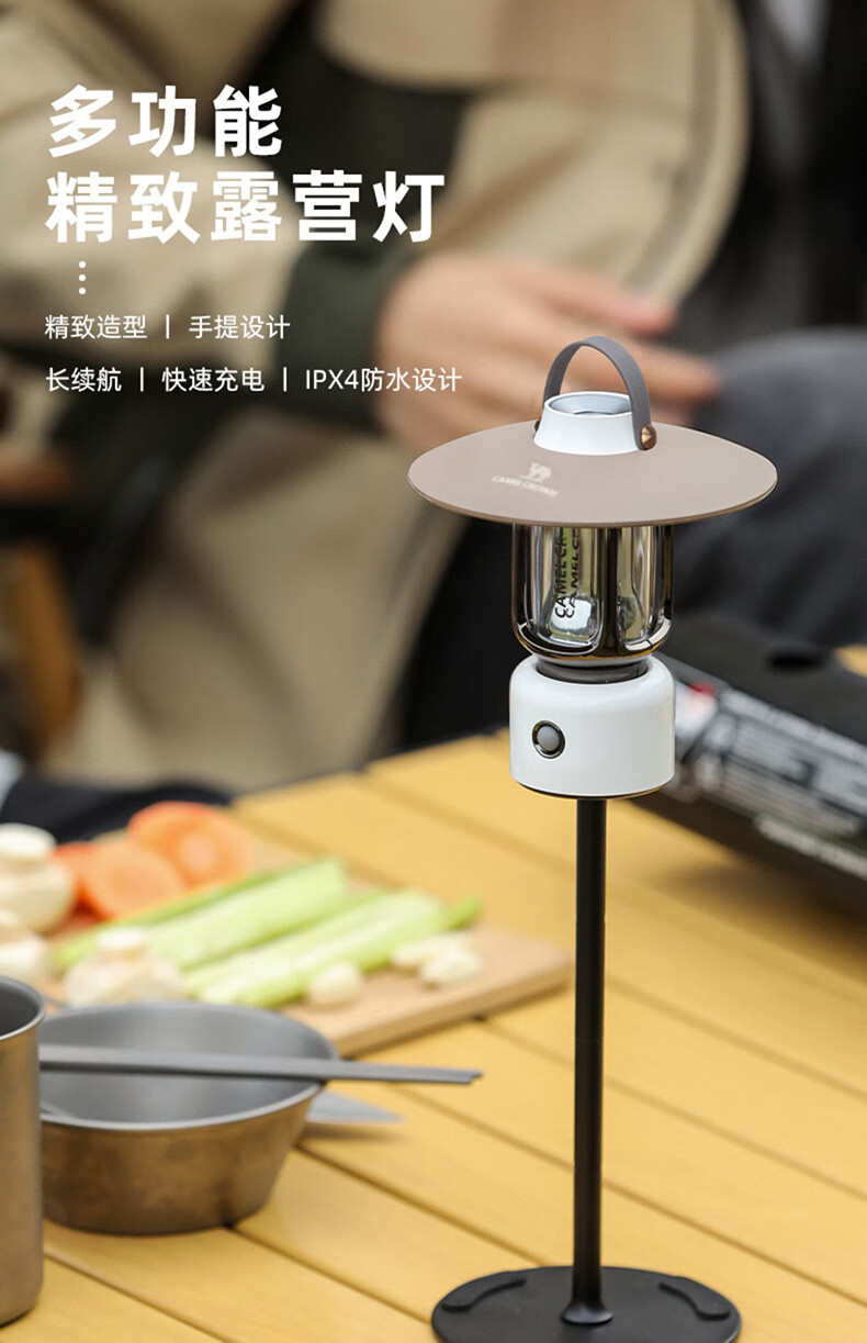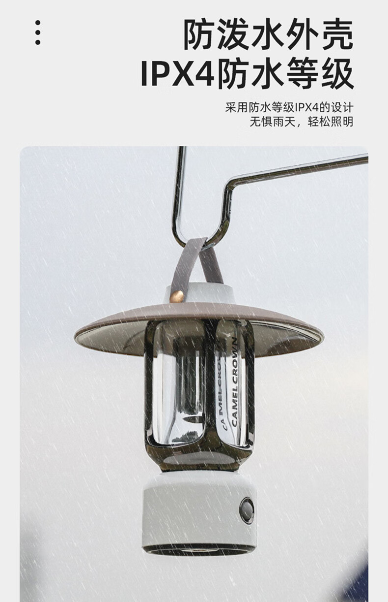駱駝CAMELCROWN戶外照明燈超長續(xù)航帳篷燈多功能氛圍燈便捷式復古營地燈 1J722C7677,白色(含支架) 自營